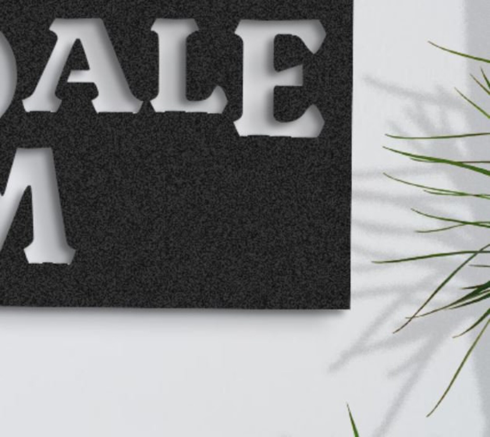 Signs are cut from our 14 ga steel and professionally powder coated black to withstand the outdoor elements.