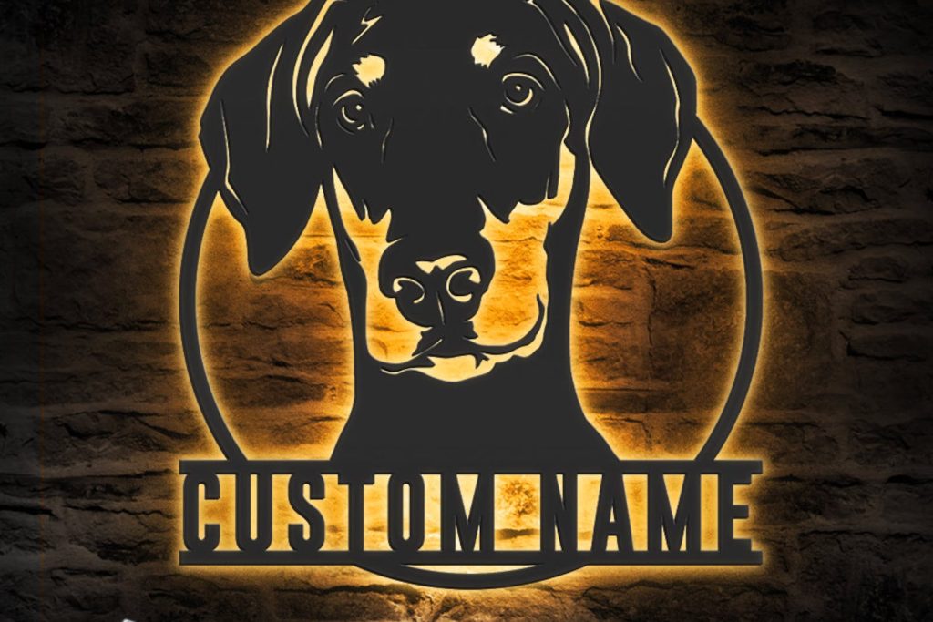 Be the first to review “Doberman Pinschers Art – Personalized Metal LED Dog Wall Sign”