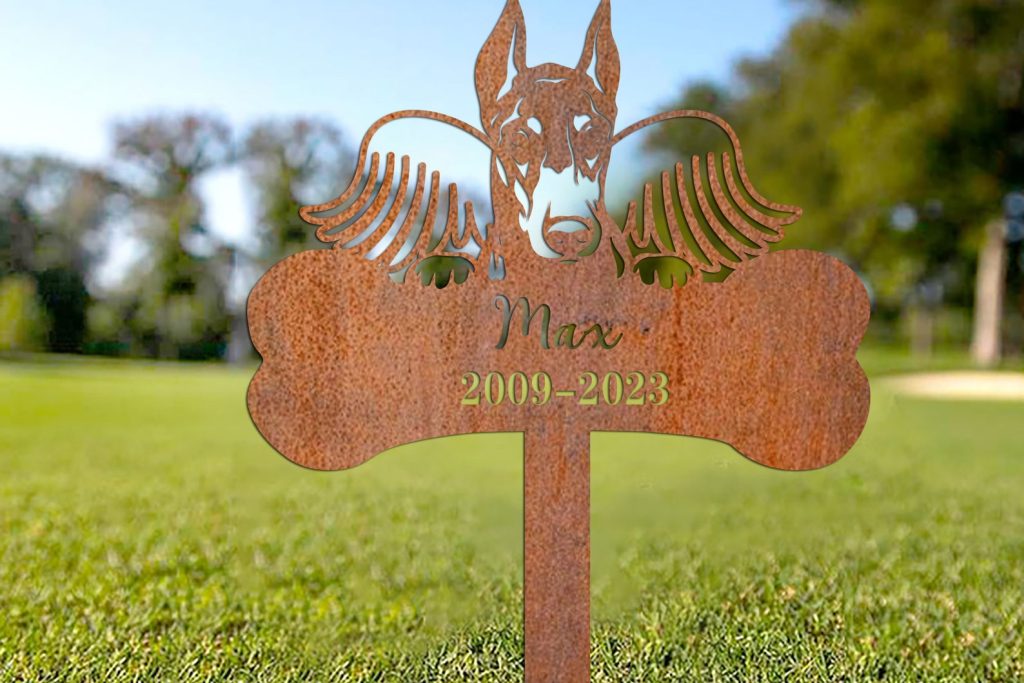 Be the first to review “Doberman Spaniel Sign – Rusty Metal Memorial Stake”