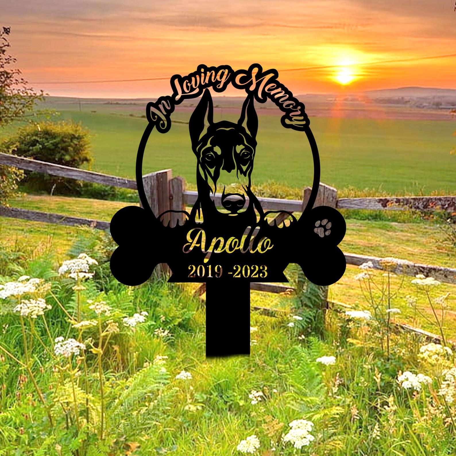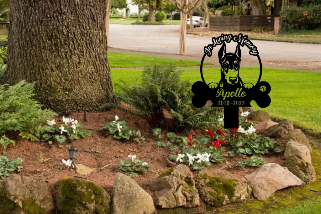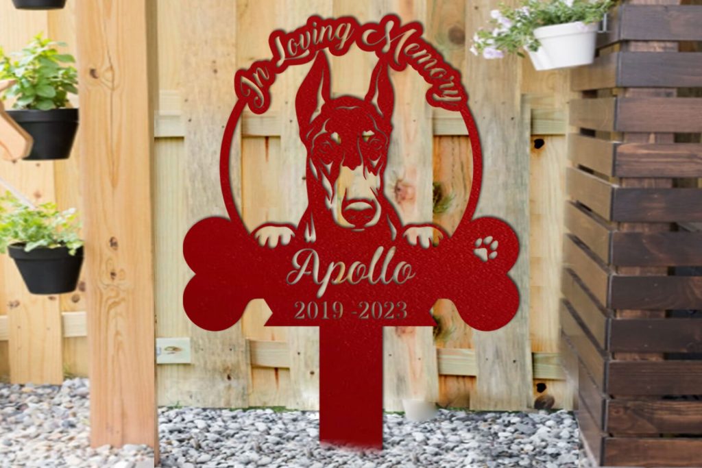 Personalized Dog Memorial Stake,In Loving Memory Doberman Dog,Metal Stake,Pet Grave Marker,Remembrance Stake,Doberman Sign,Garden Decor