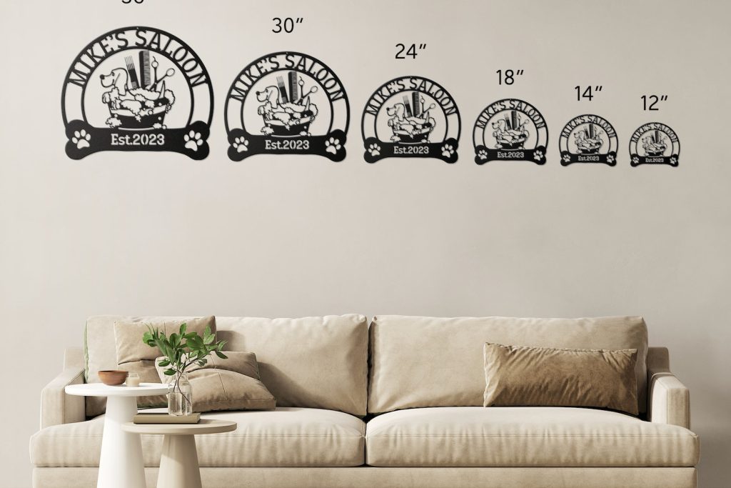Introducing our stunning Custom Dog Grooming Hair Salon Metal Wall Art! This exquisite piece will add a touch of elegance to any pet grooming salon or home decor. Expertly personalized with the name of your beloved groomer, this beautiful sign is a must-have for any passionate pet owner. Crafted with care, this handmade decoration is perfect for showcasing your saon name. It also makes a thoughtful Christmas gift for any pet enthusiast. Enhance your space with this unique and customizable wall art that truly captures the essence of pet grooming and adds a charming touch to any room.