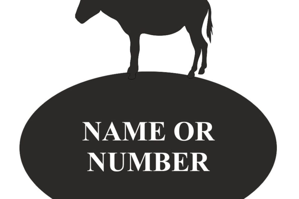 Be the first to review “Donkey Oval Metal House Plaque – Personalized Sign”