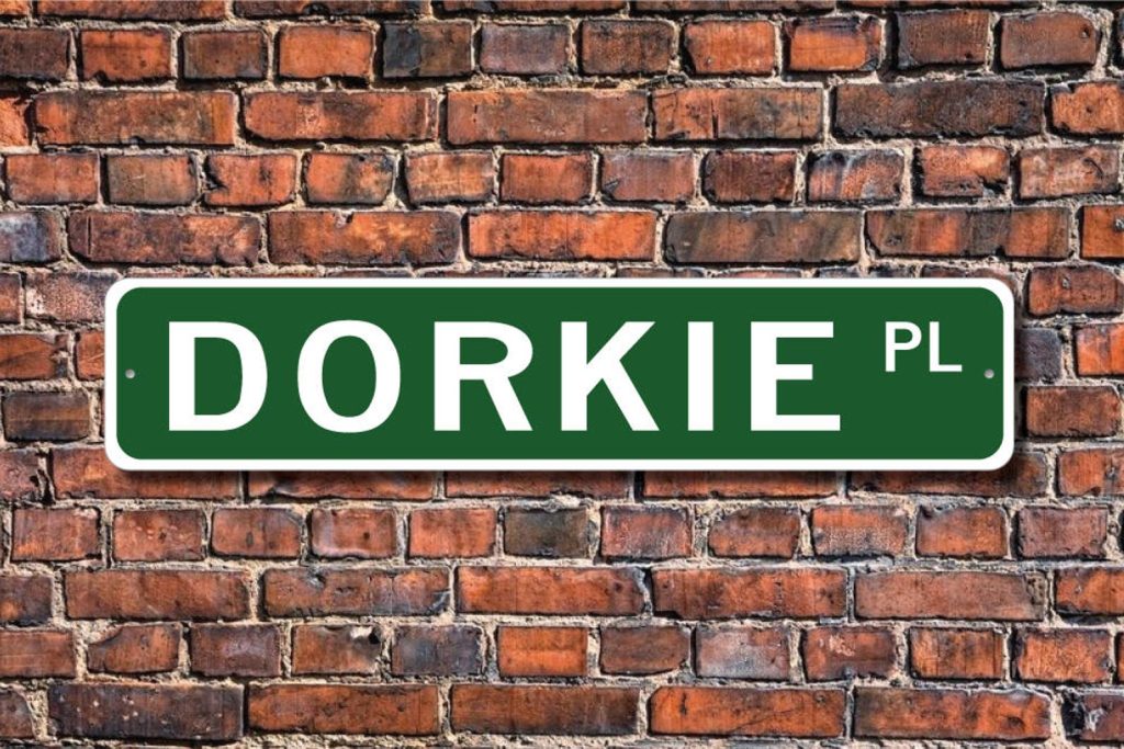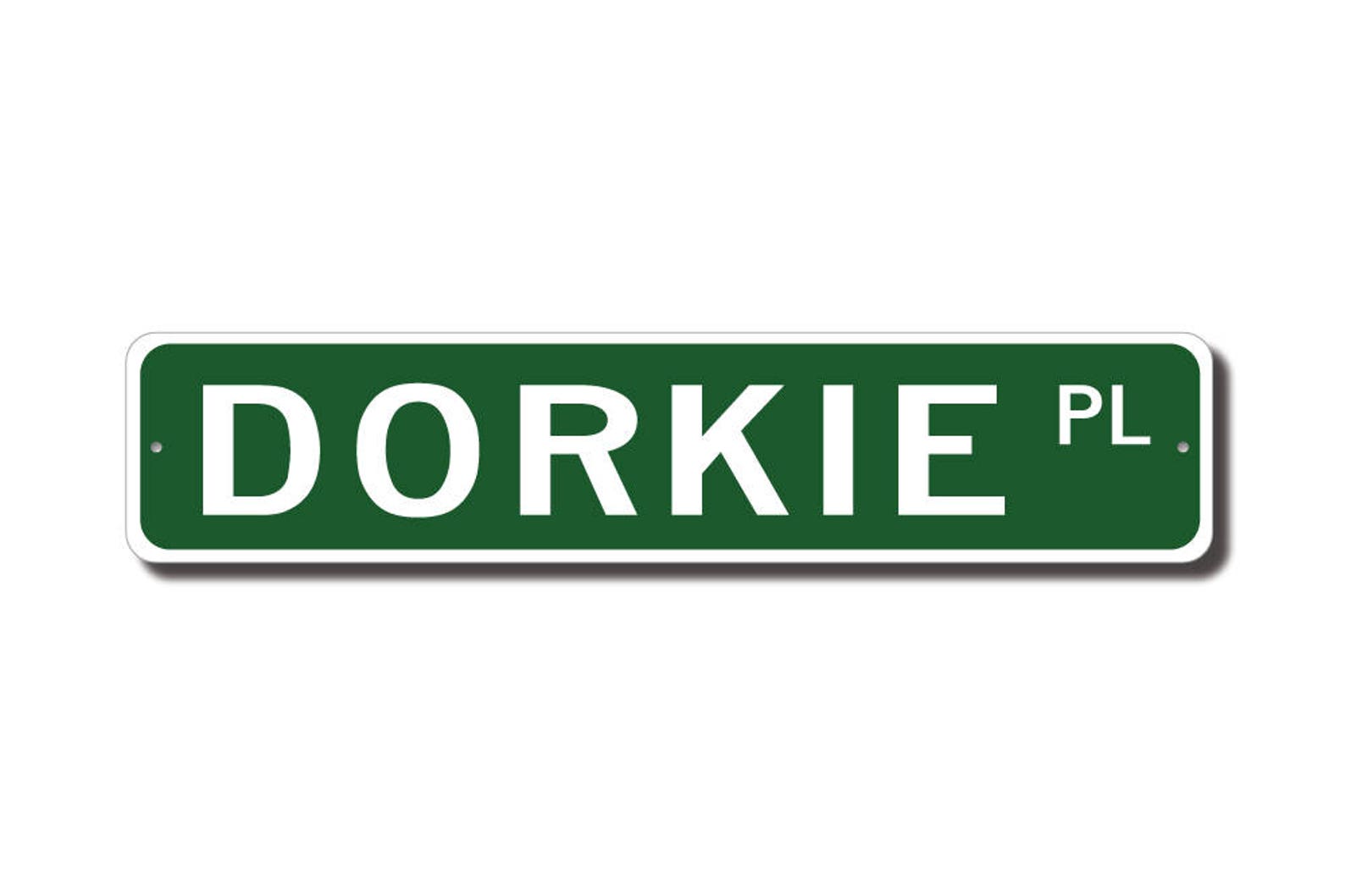 Dorkie lovers check out this awesome street sign! This will make the perfect piece for any Dorkie lover or Dorkie cave. Made of premium aluminum it will stand the test of time. This sign will look great in any room, garage, barn or office! Get this sign for your favorite friend that loves a Dorkie!