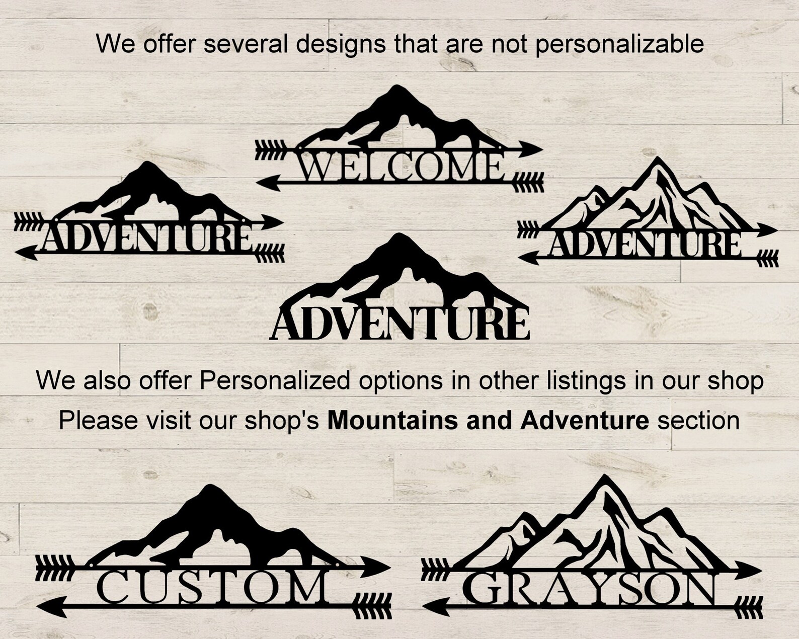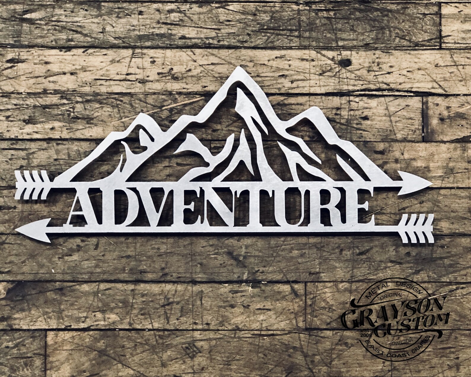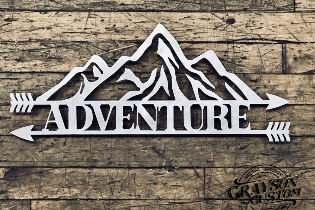 Custom Personalized Double Arrow Mountain Range Adventure Name Sign. This Rustic metal wall decoration will make a great Wedding, Anniversary, or Christmas gift. Adventure awaits a great wall hanging as part of your farmhouse decor or some metal words of inspiration to hang just about anywhere you9;d like : )