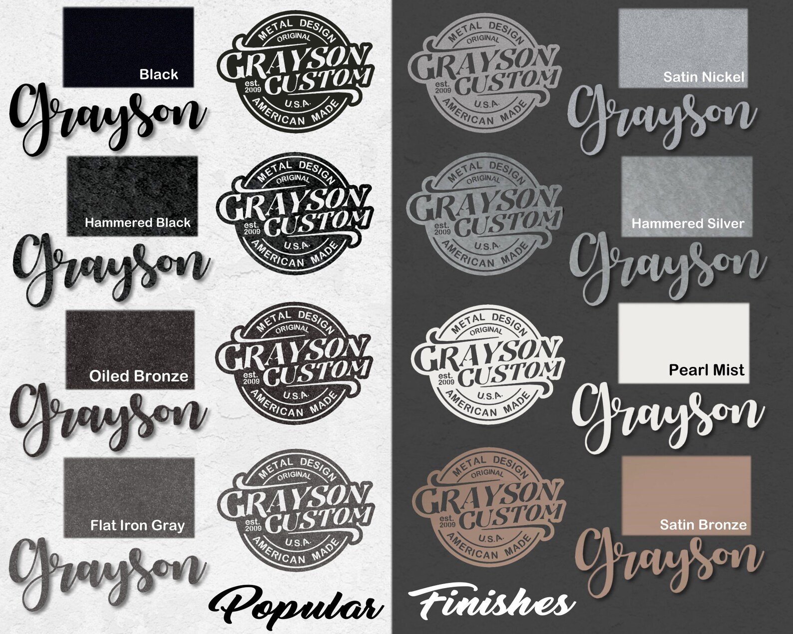 * You are purchasing the design shown in the listing, in your choice of materials and finish