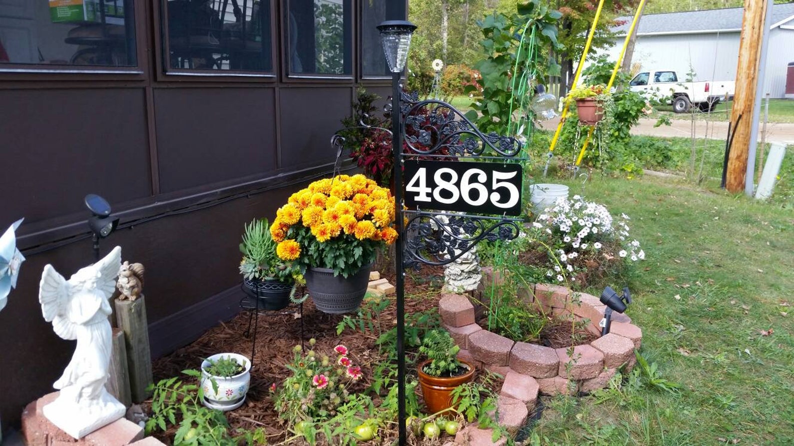 Perfect gift for mothers day or fathers day idea. Double sided reflective address markers that are a important, functional art for your yard. Ensure you and your loved ones will never have to be compelled to worry regarding somebody not locating your home ever again! You can now add a name to your sign to further personalize it!