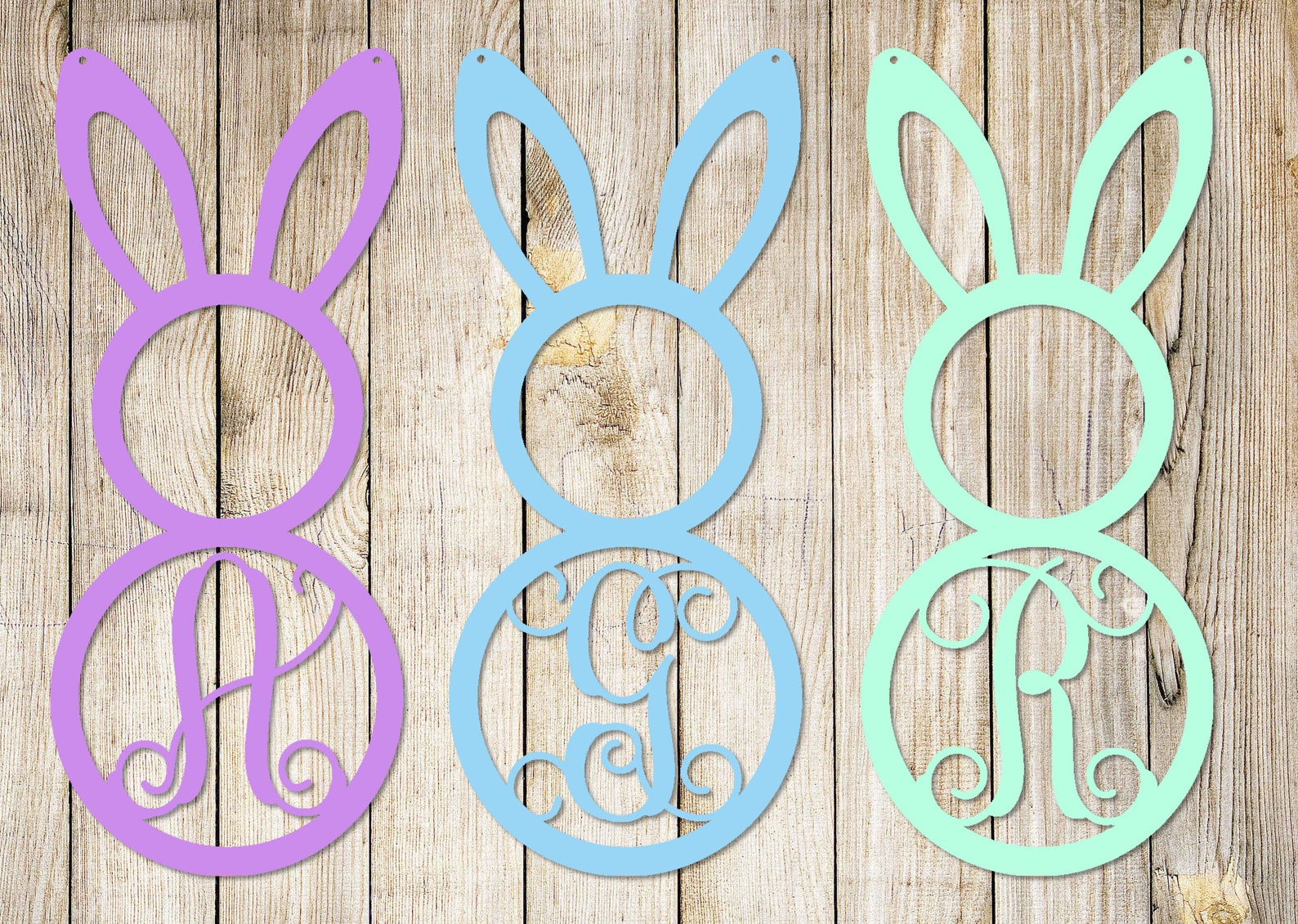 Bunny Monogram Door Hanger, Wreath, & Metal Sign