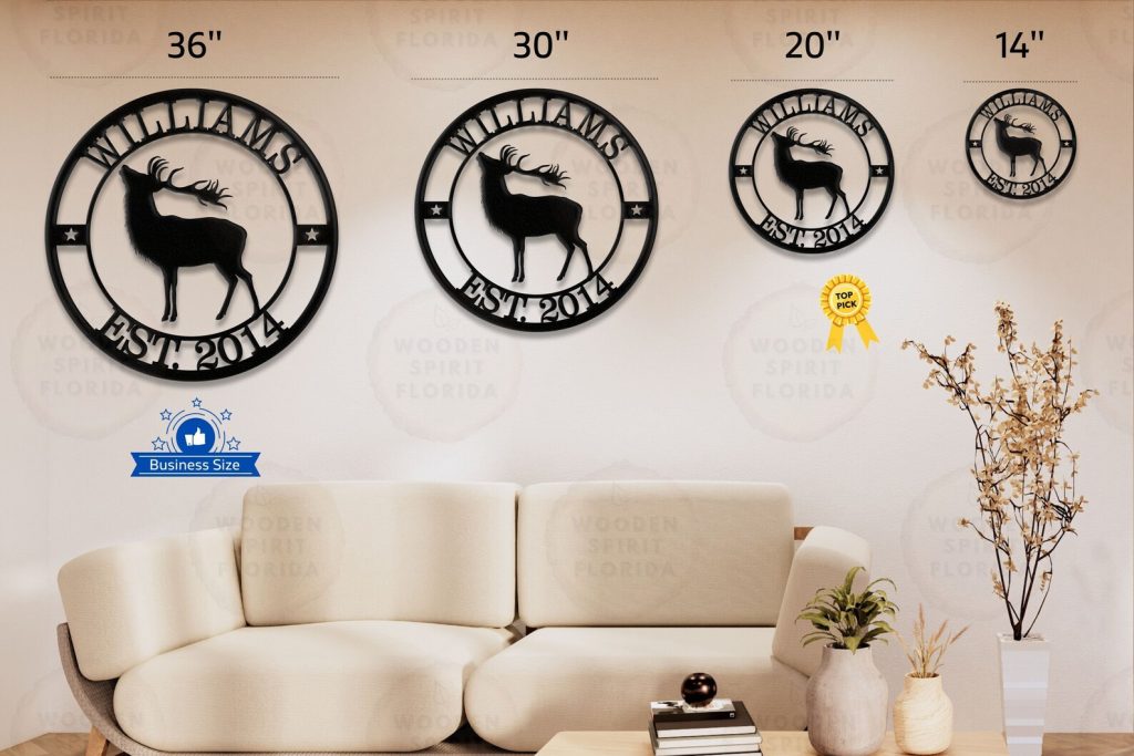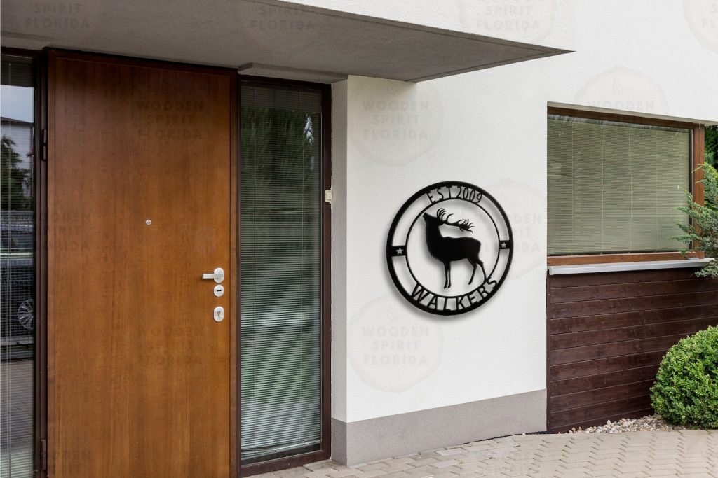 Elegant Deer Hunting Art – Custom Wall Decor, Personalized Metal Family Name Sign, Gift