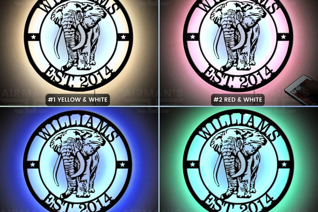 Elephant Animal LED Art – Custom Wall Decor, Personalized Metal Sign for Wildlife Lovers