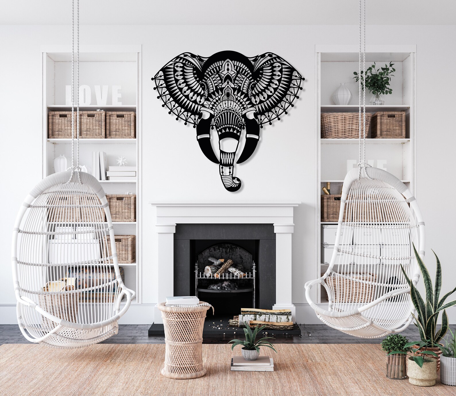 Elephant Mandala Metal Wall Art, Elephant Wall Decor, Minimalist Elephant Sign, Boho Bedroom Wall Decor, Ethnic Wall Decor, Home Decor Gift