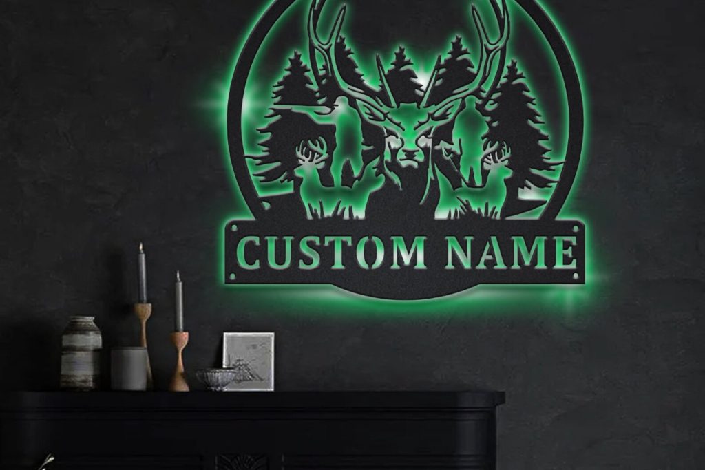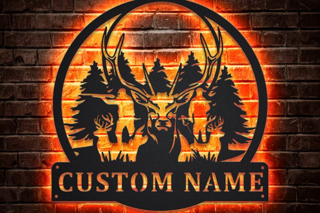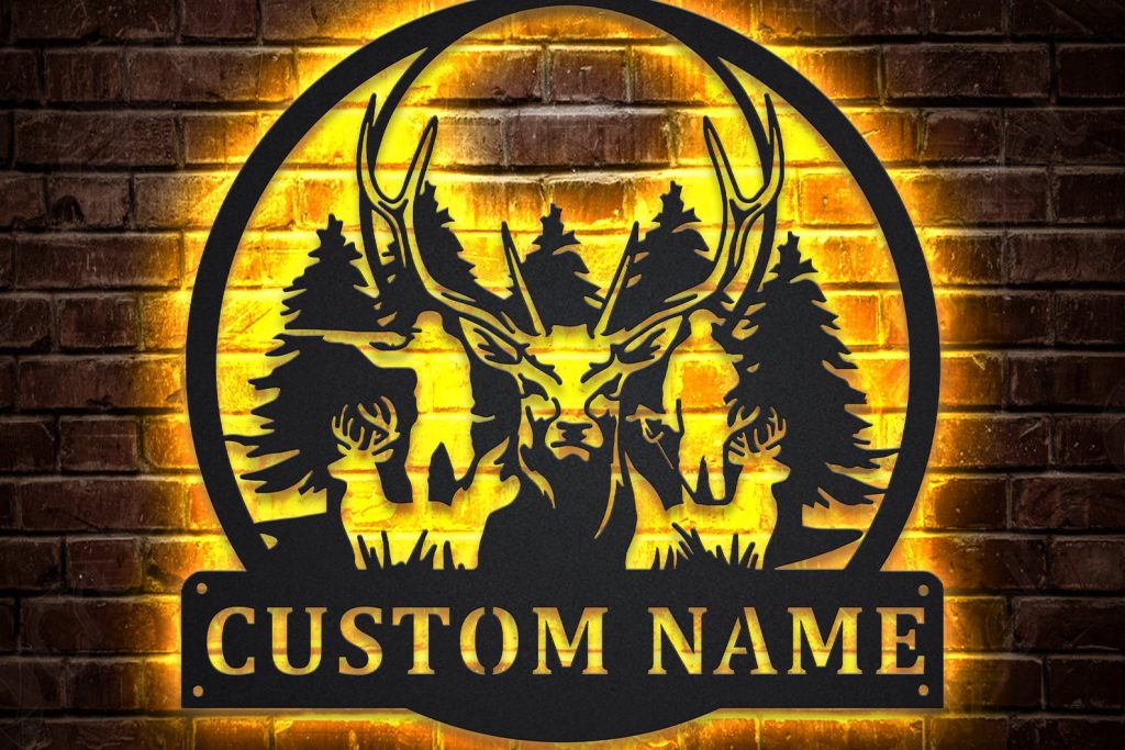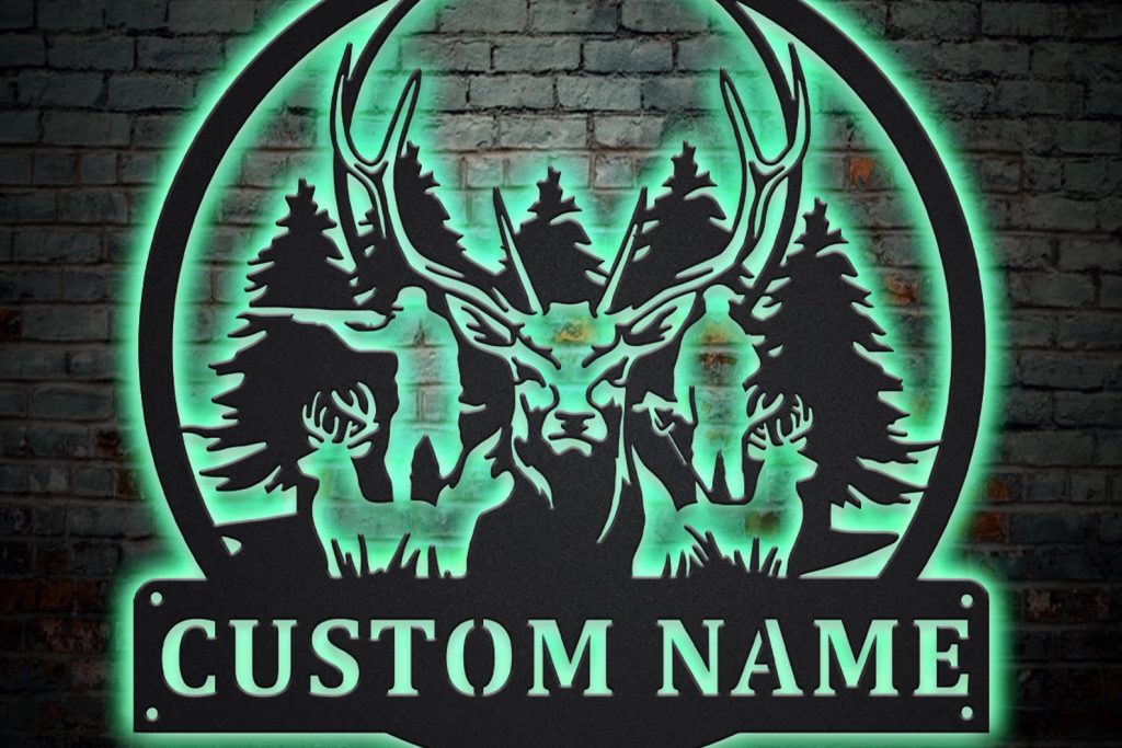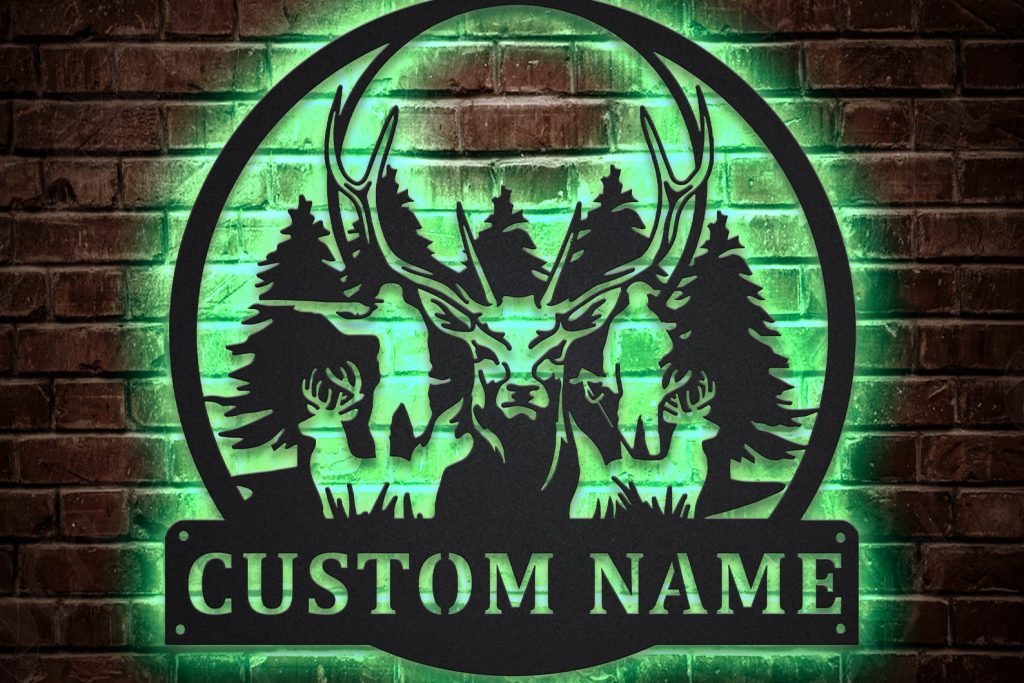 Revamp your hunting cabin with our Custom Deer Hunting Monogram Metal Sign that comes with LED lights. It9;s a perfect addition to your collection of hunting memorabilia. Made with high-quality metal, this sign features a stylish deer design that will surely elevate the aesthetics of your space.