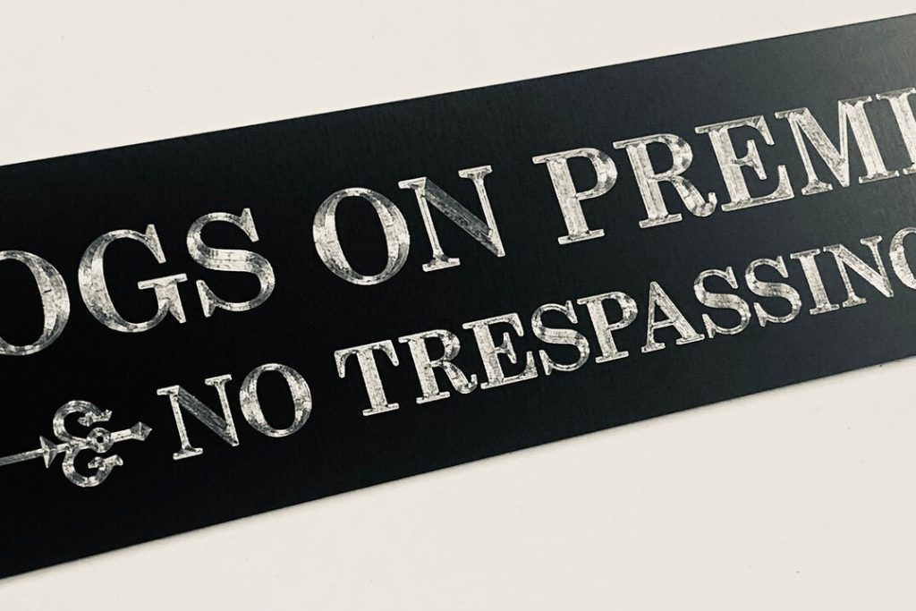 Be the first to review “Engraved Dogs on Premises Metal Sign, 12×3”