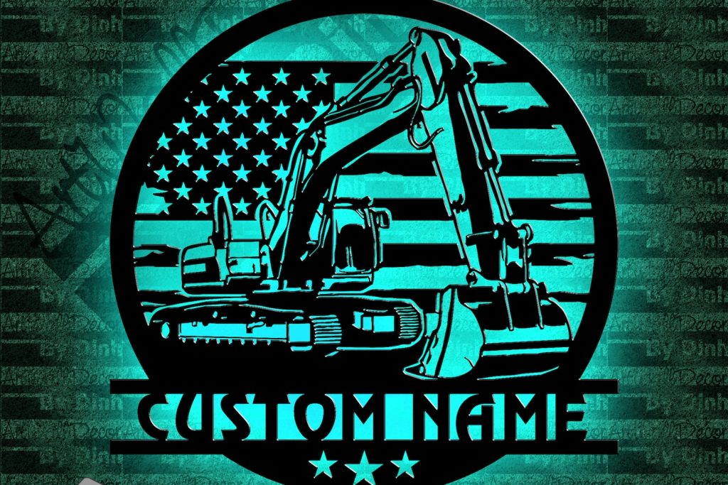 Be the first to review “Excavator Metal Wall Art with LED, Personalized Sign”