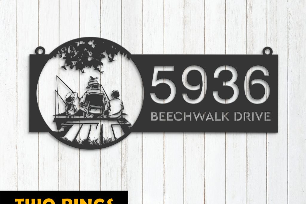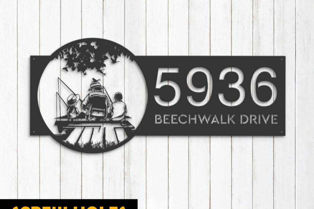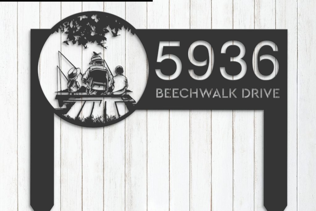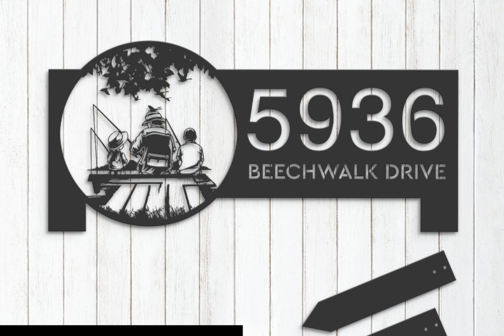 Family Fishing Scene Metal Address Stake