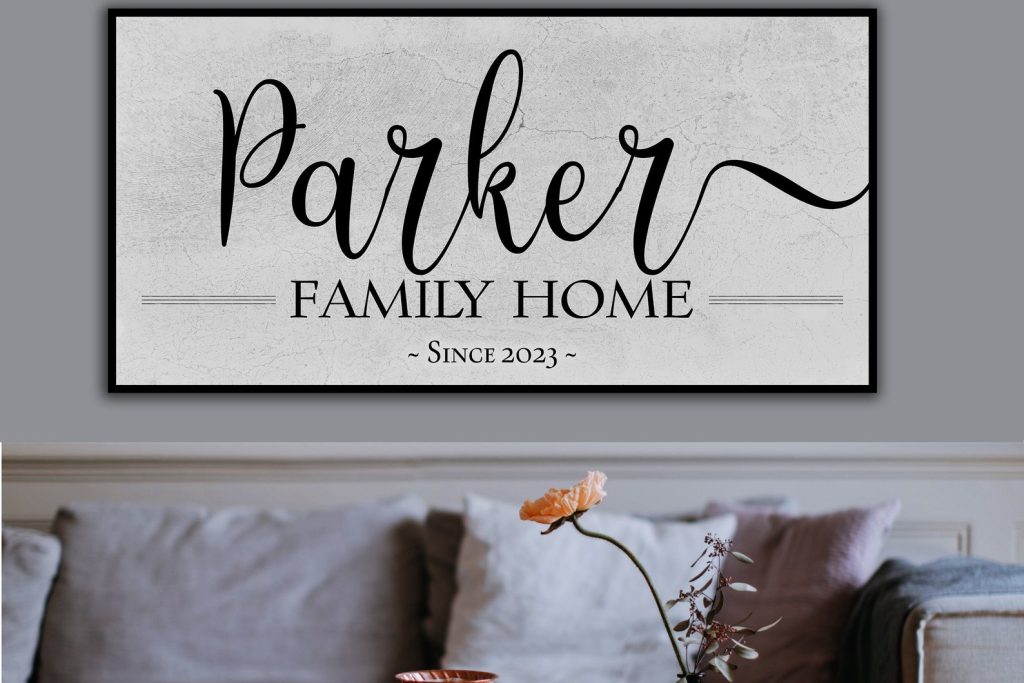This Family Home Name Sign offers a clean, modern farmhouse look and feel. I9;ve placed a little distress on the background but left the lettering clean. Display this personalized wall decor with your last name and established date anywhere in your home or on the porch. It adds warmth and minimalistic beauty to any wall.