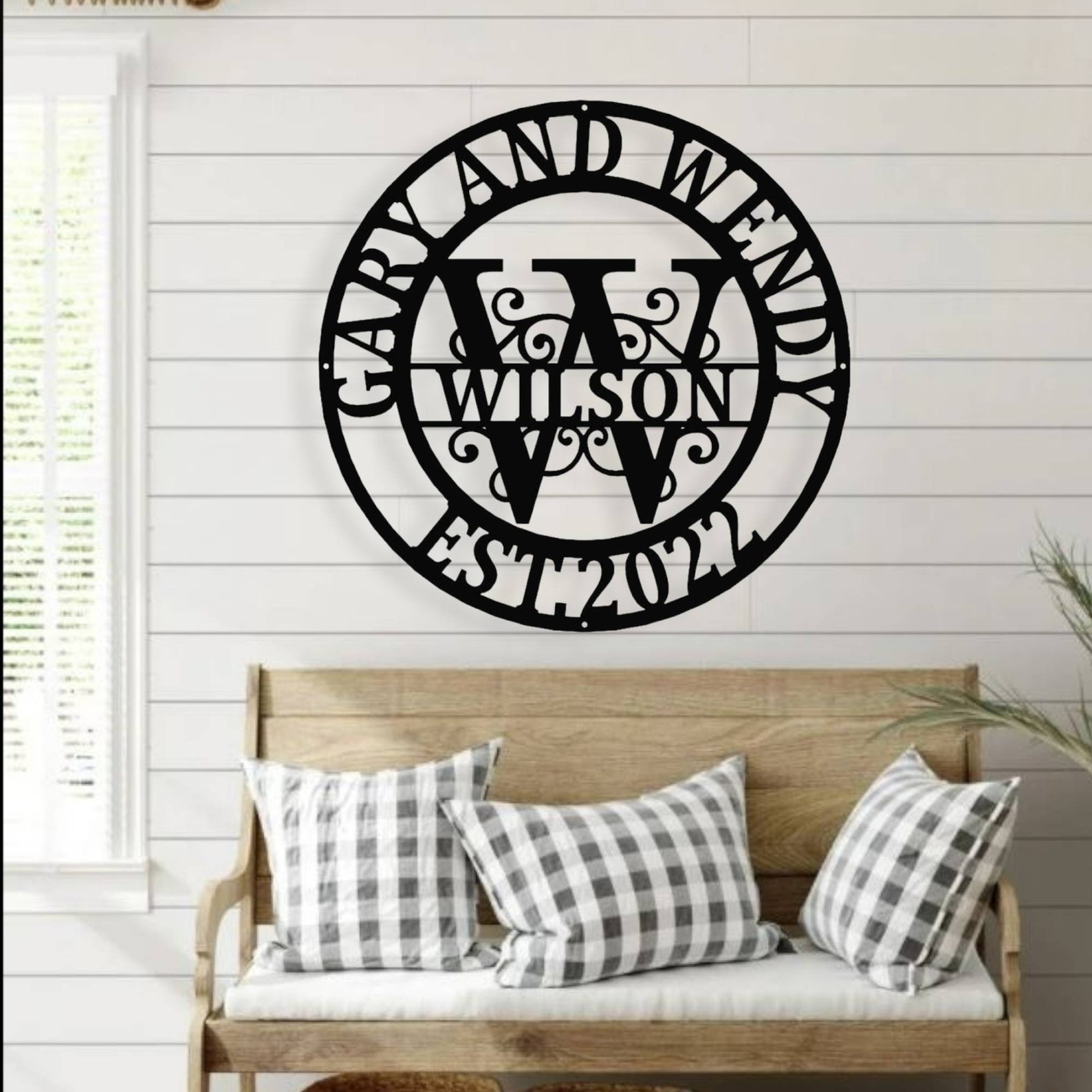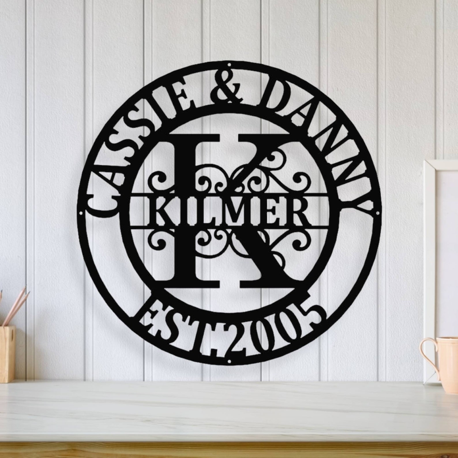Family Name Metal Sign, Monogram, Door Hanger, Wedding & Housewarming Gift