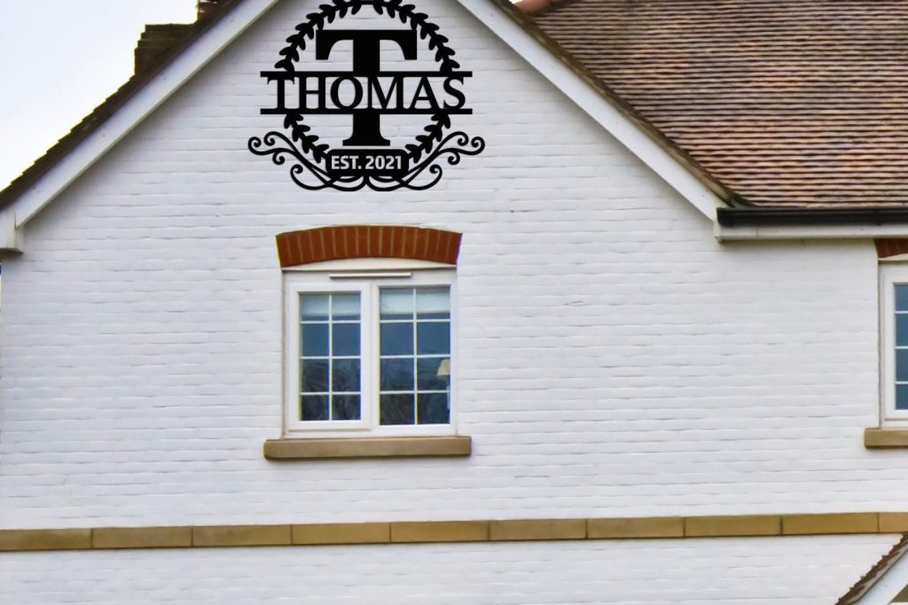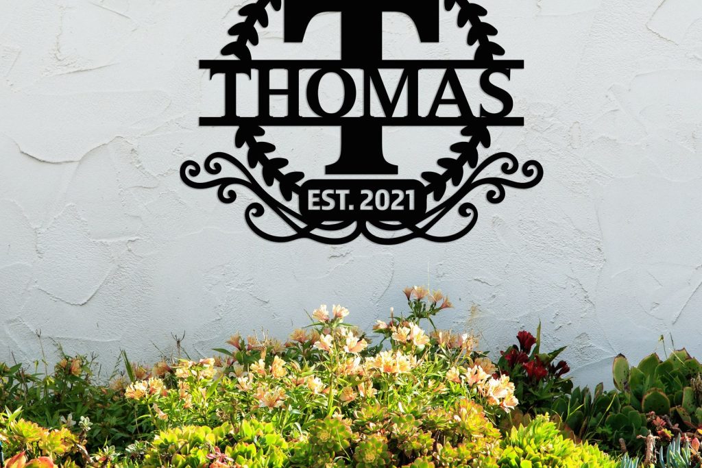 It9;s a great way to show off your family name in an elegant way! You can customize it with any family name, business name, house number, full address or any text. This sign is made from metal and coated with high-quality electrostatic powder coating. So it will last for many years without rusting or fading in the sun. It9;s also easy to hanging to wall.