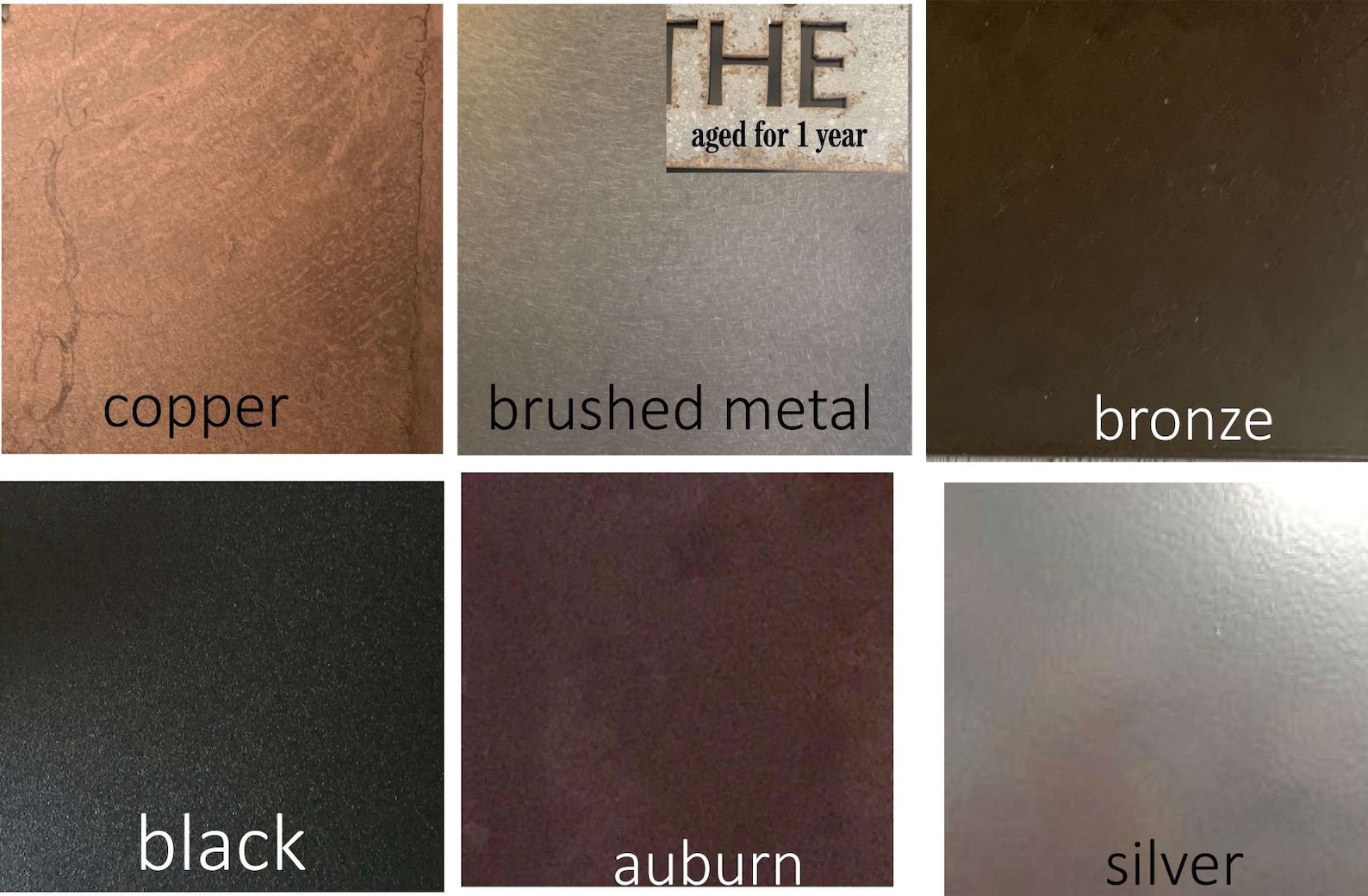 Metal laser cut sign personalized with your name or welcome ,finished in acid washed auburn, or copper or black powder coat. measures 22"". You can also add first names or Est. date etc. Our finish is a baked on powder coat for extremely durable, long lasting finish