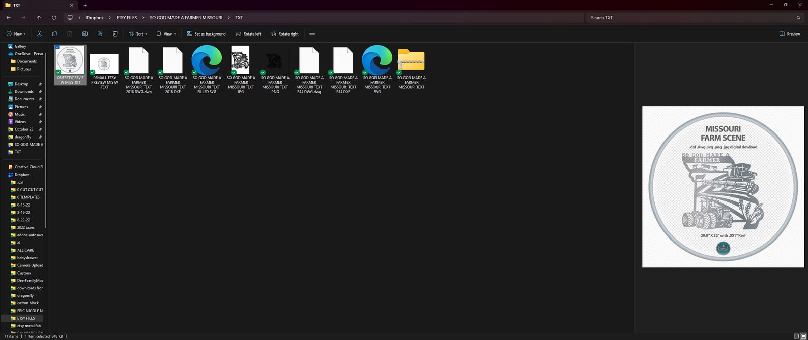 Introducing our missouri sign laser cutting files for cnc, a detailed god made a farmer sign for metal. This farm and combine sign svg, tractor dxf for laser cutters file bundle includes svg jpg png dwg (r14 & 2018) and dxf files (r14 & 2018) for a full collection of file formats to suit your needs. These versatile cutting files are perfect for creating custom plasma cut ranch signs on your cnc machine and feature clean lines and minimal nodes; they have been sheetcam tested for tolerances.