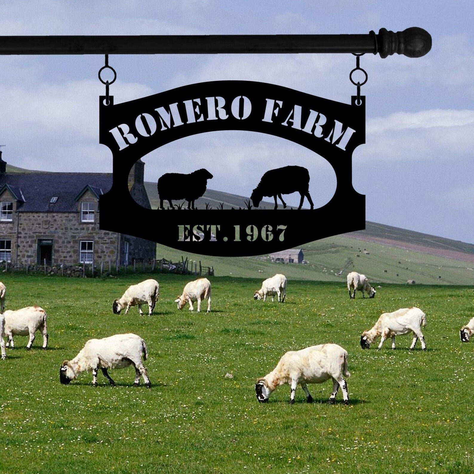 Personalized Farm Sign With Established Date, Metal Sign Personalized, Metal Sign Custom, Metal sign,corn stalks, sheep , Family Name Sign