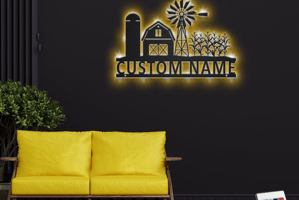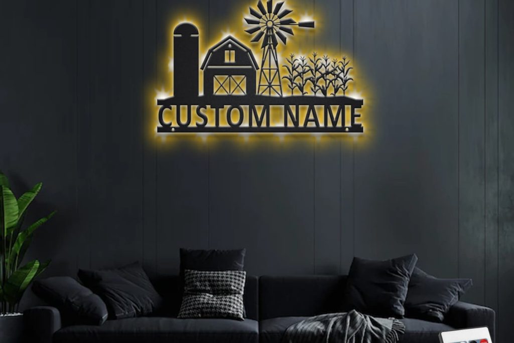 Farmhouse Art – LED Personal Name Sign, Room Decor
