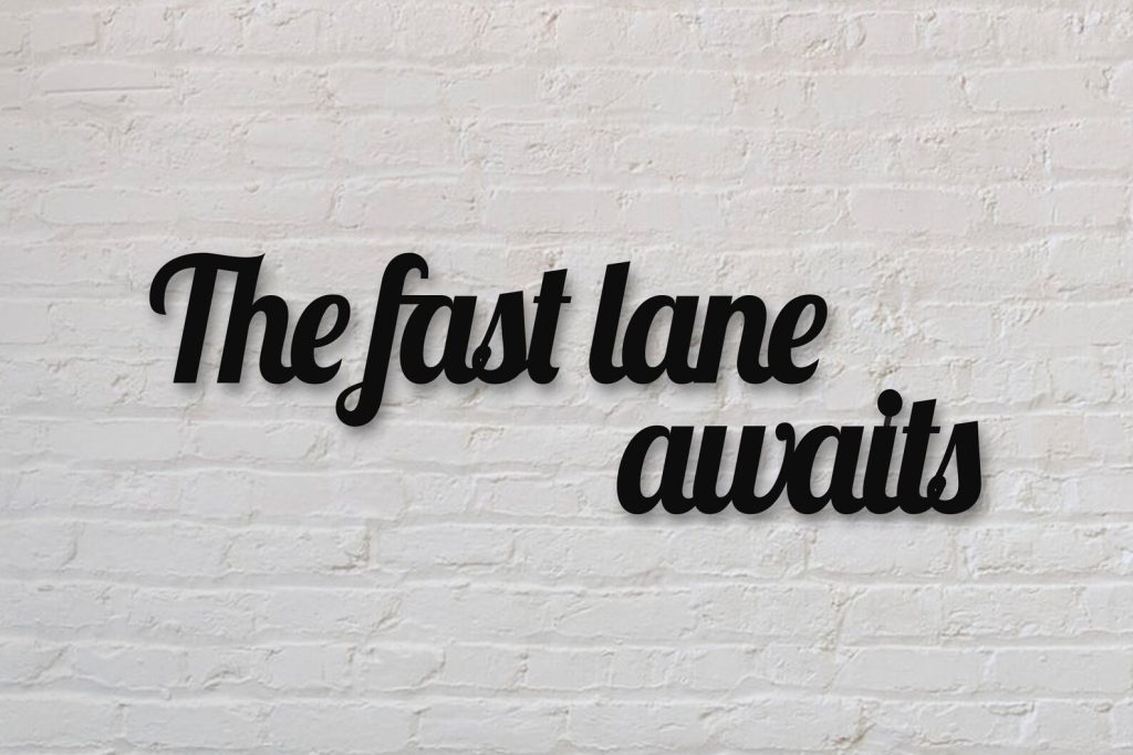 2. Inspiration: The fast lane awaits sign can also serve as a reminder to push oneself to achieve goals and strive for success. It can be placed in a home office, study or even a bedroom to inspire and motivate the individual.