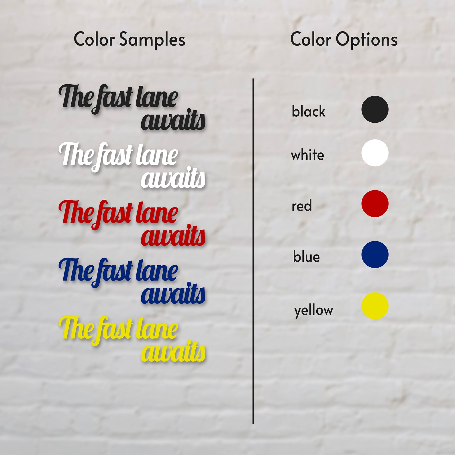 In summary, our Metal The Fast Lane Awaits Sign is a versatile and trendy addition to any home decor. Its multiple functions, size and color options, and suitability for both indoor and outdoor use make it a great choice for those who love contemporary styles. Order now and add a touch of automotive style and personality to your space!