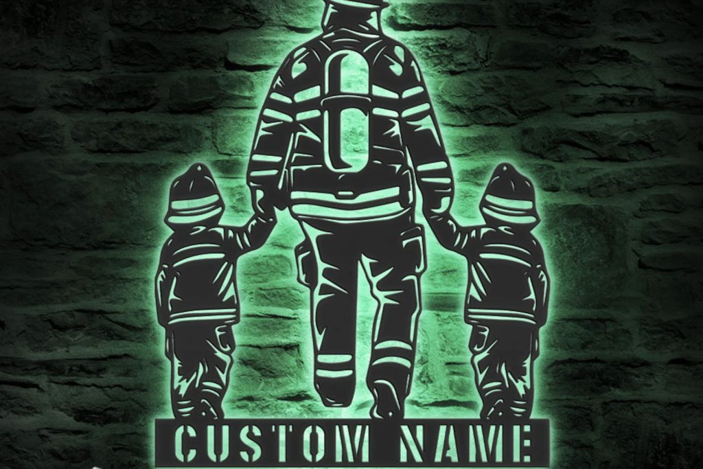 Be the first to review “Father & Son Firefighter Sign, LED Light, Home Decor”