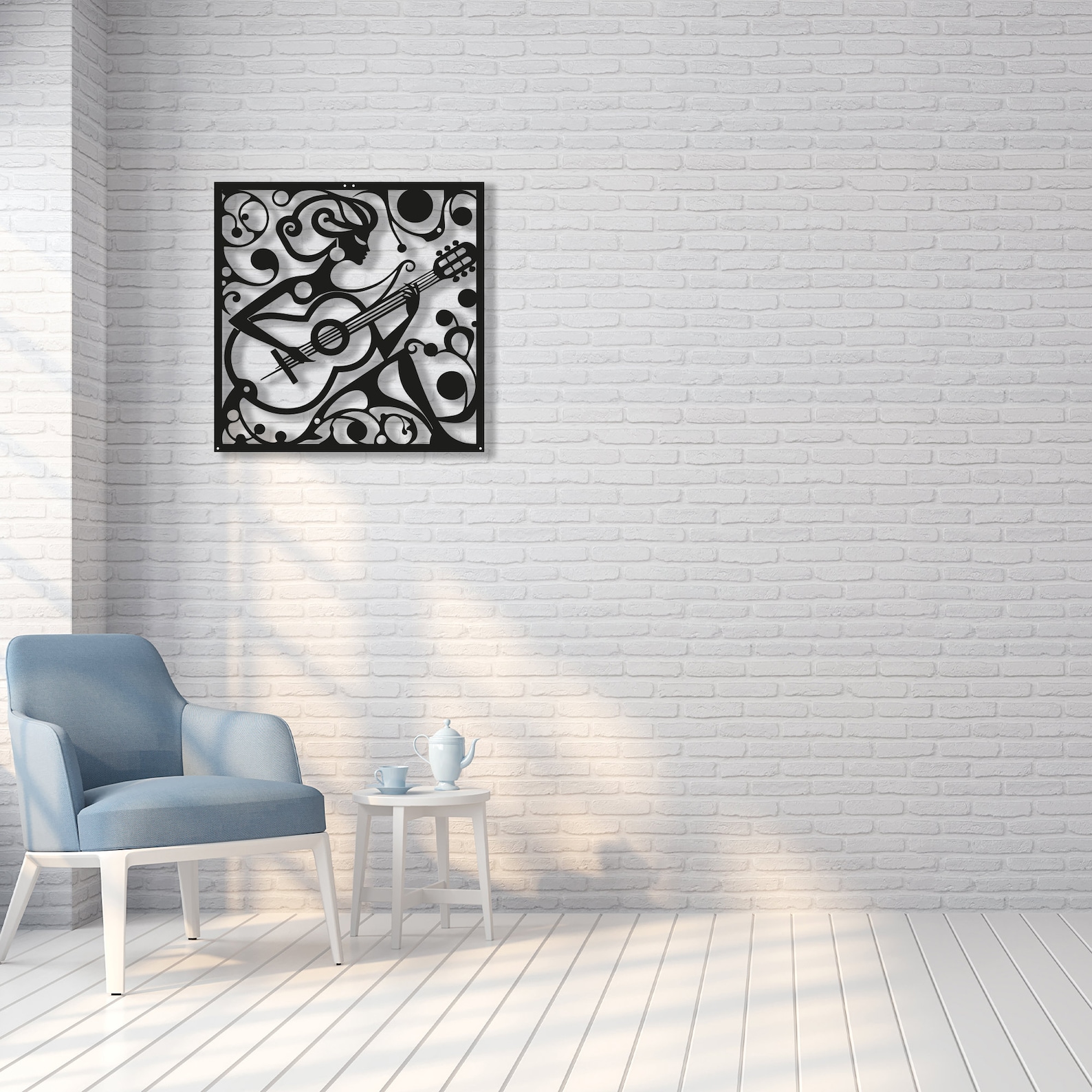 Female Musician Metal Wall Decor – Aesthetic Wall Decor for Music Lovers-Apartment Metal Wall Art – Man Cave Wall Decor – Guitarist Wall Art
