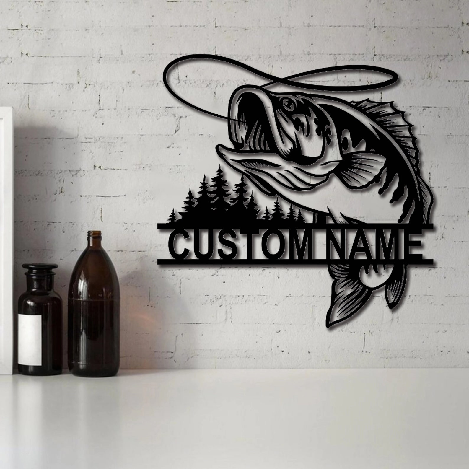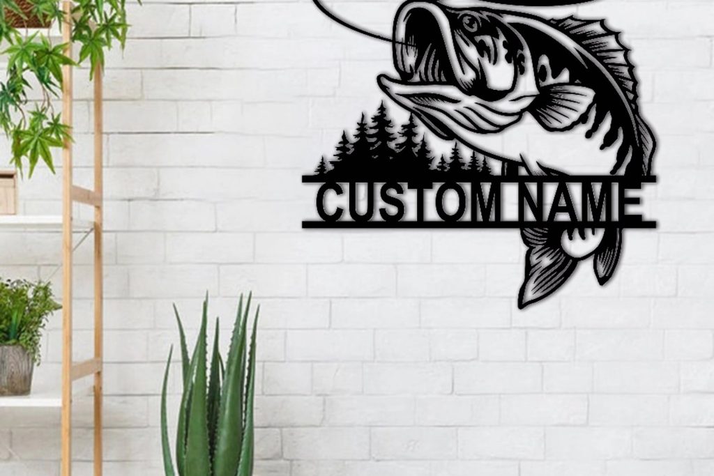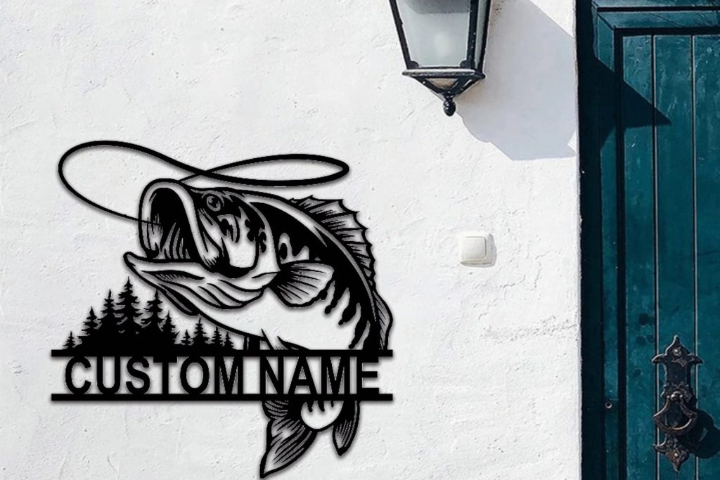 Fish Metal Name Sign, Bass Fishing Metal Monogram, Fishing Gifts for Men, Metal Fish Sign, Custom Fishing Metal Sign, Fisherman Gift