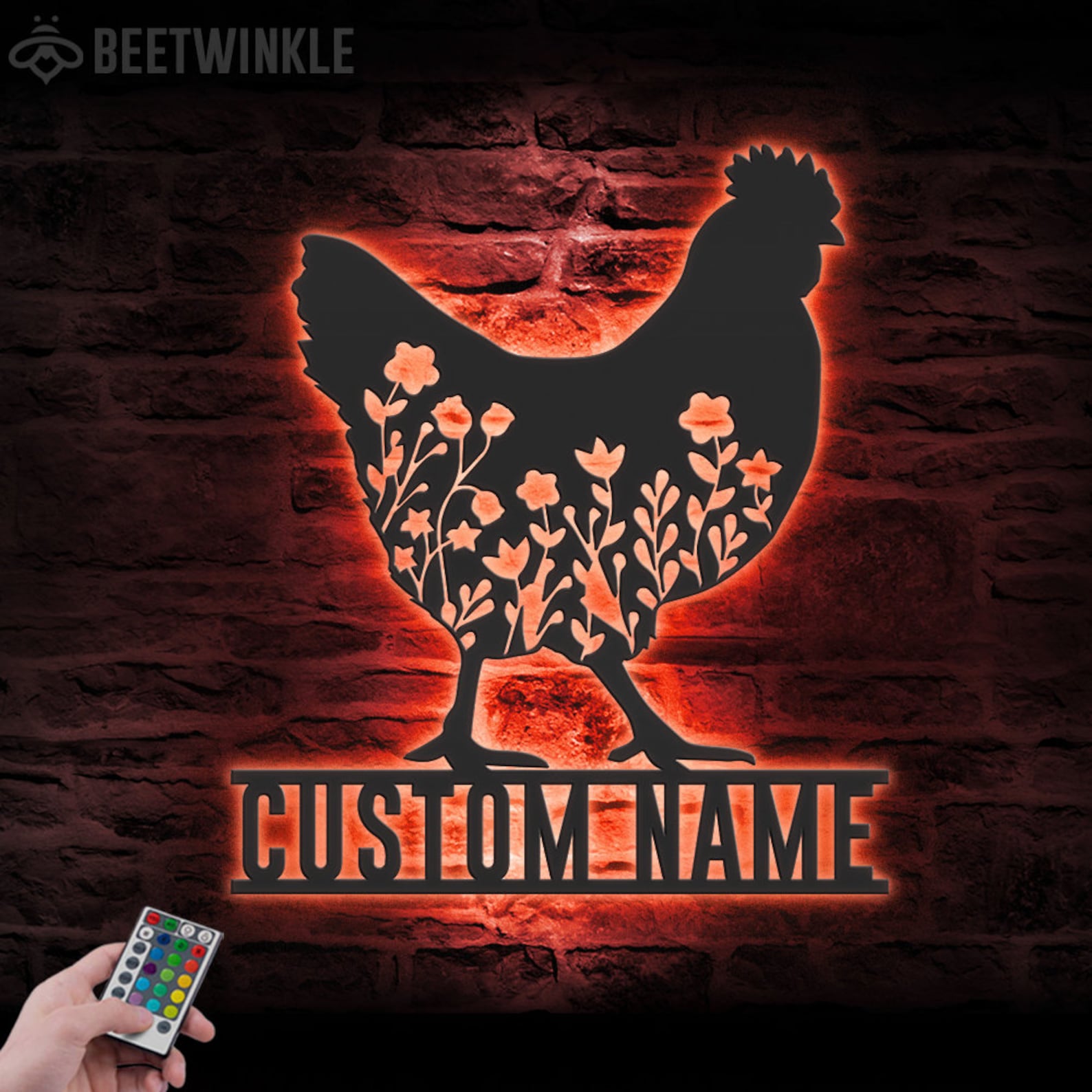 Be the first to review “Floral Chicken Art – Personalized Metal LED Coop Wall Decor”