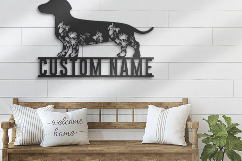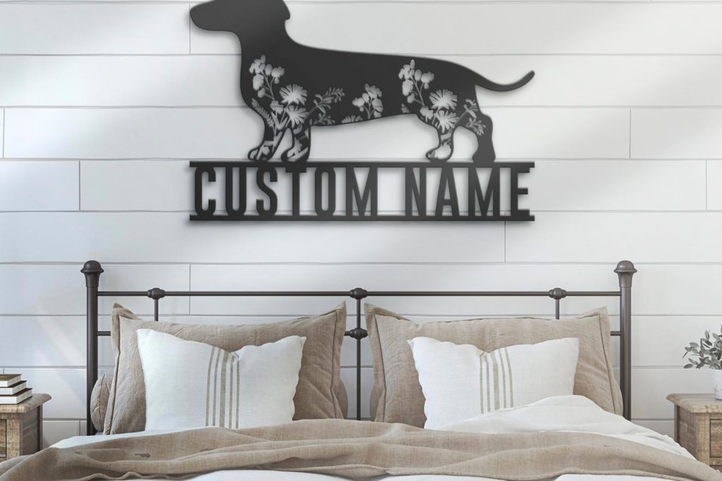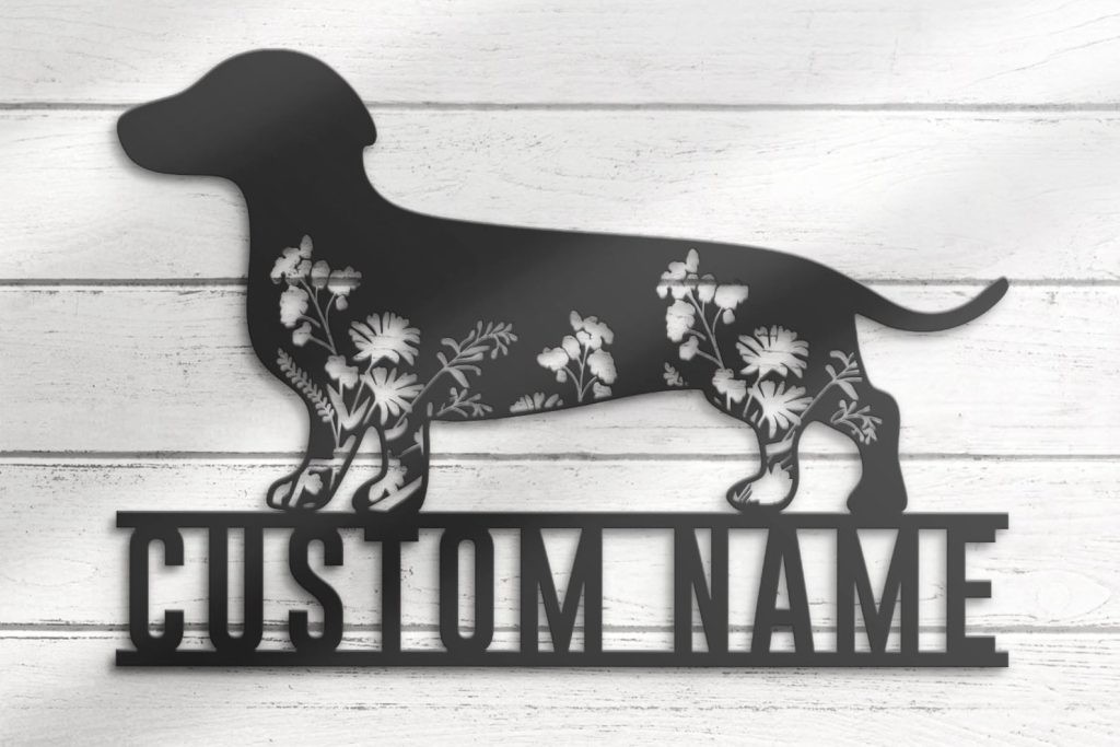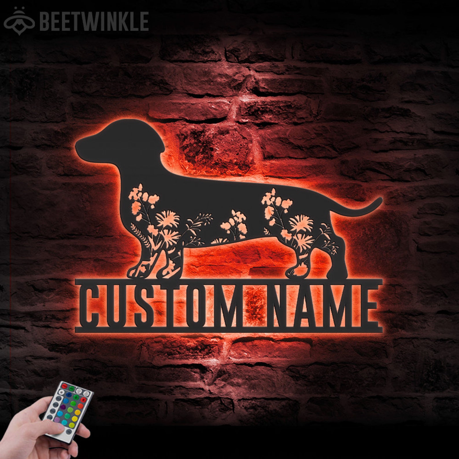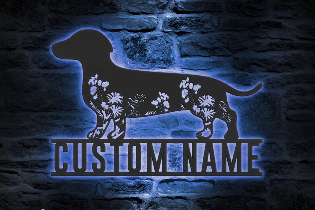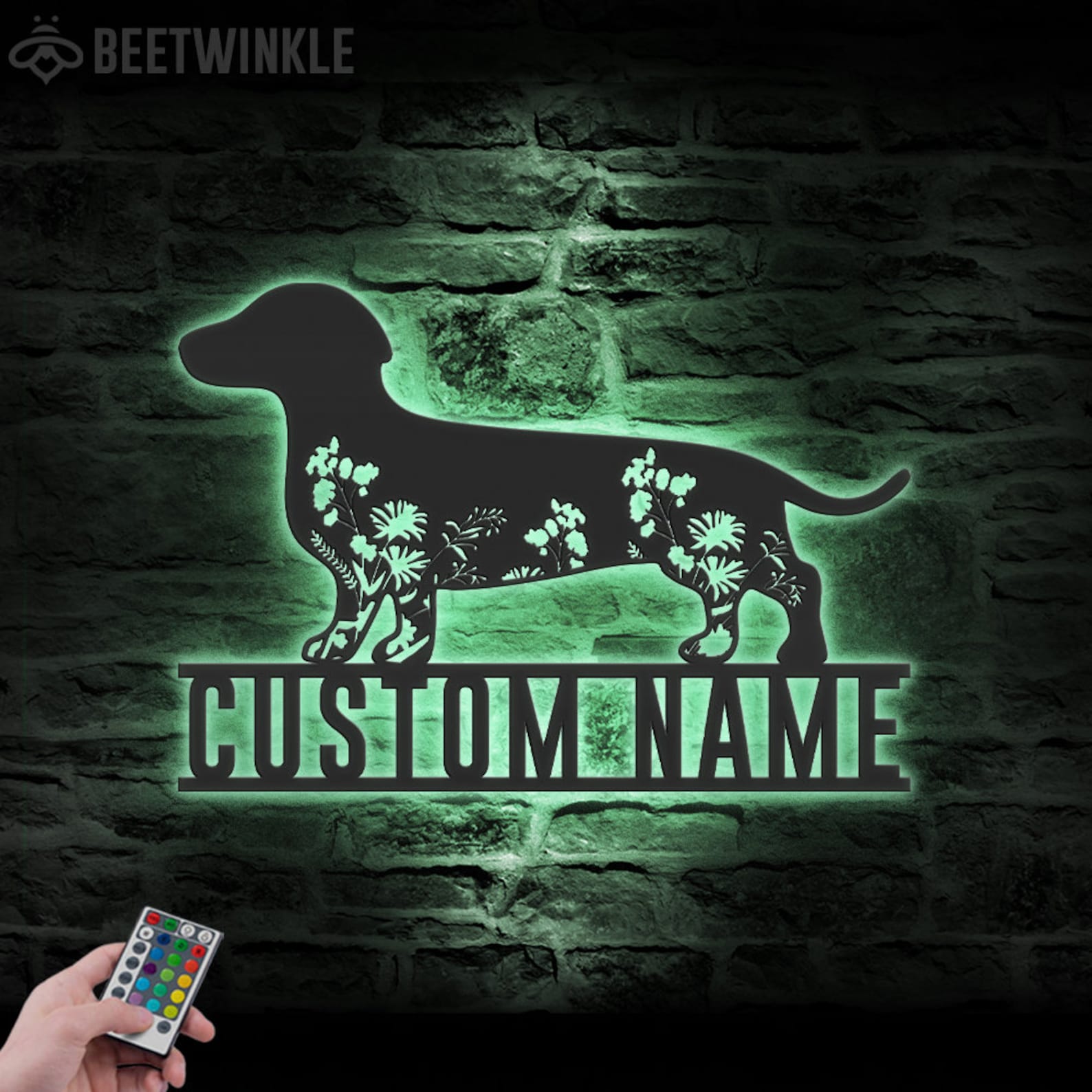 Be the first to review “Floral Dachshunds Art – Personalized Metal LED Dog Wall Sign”