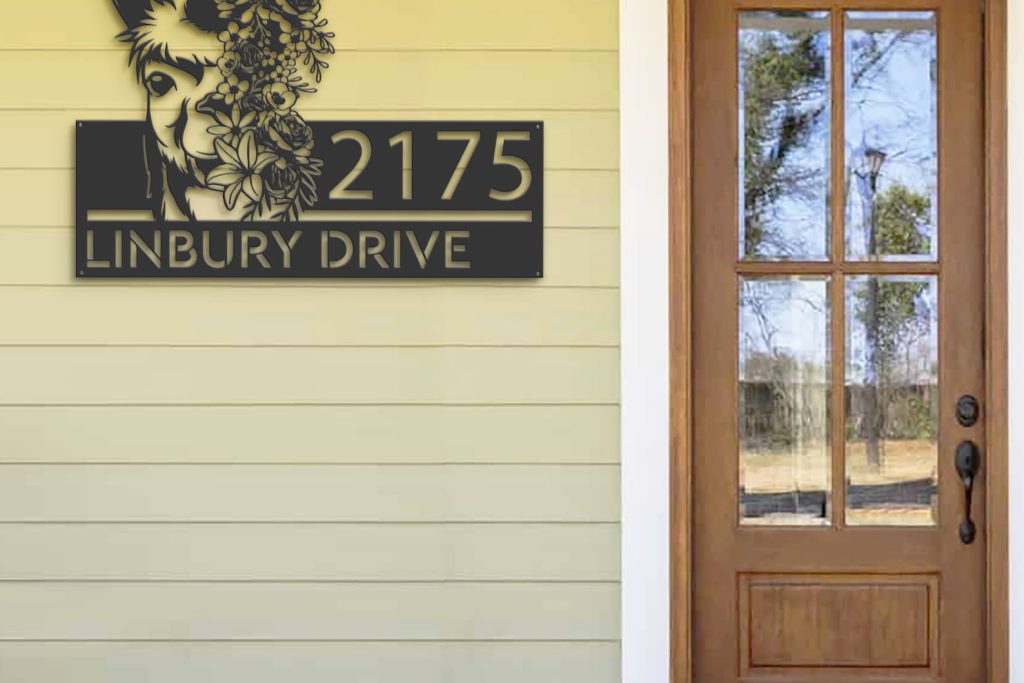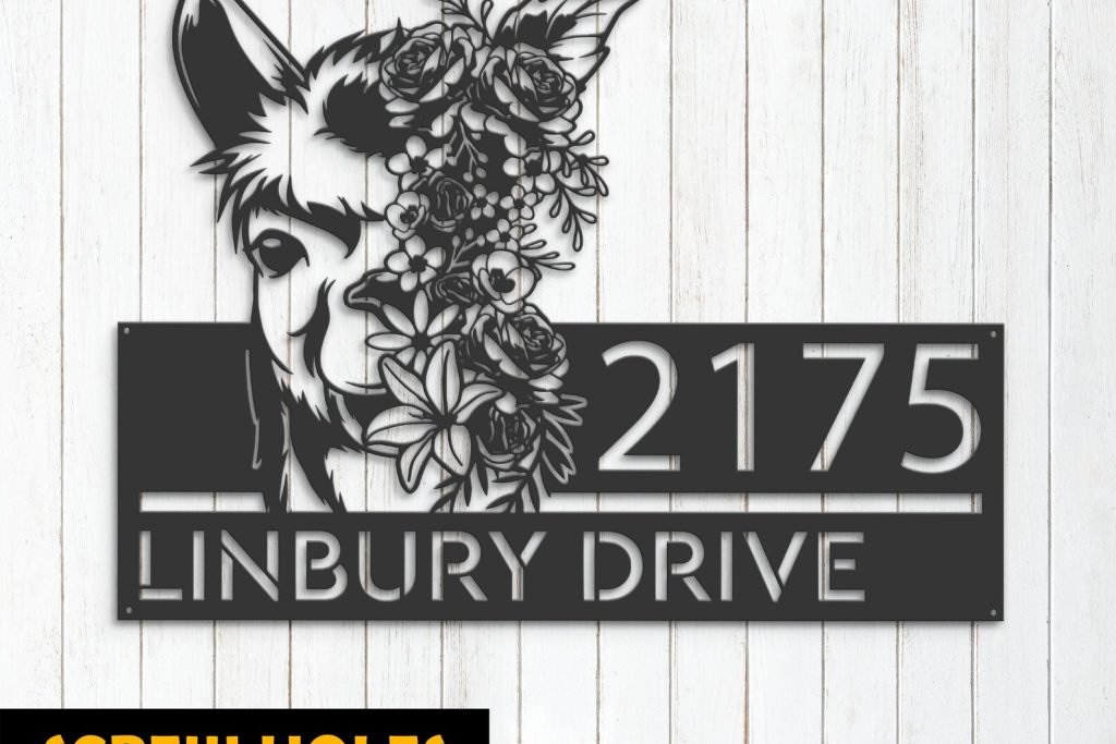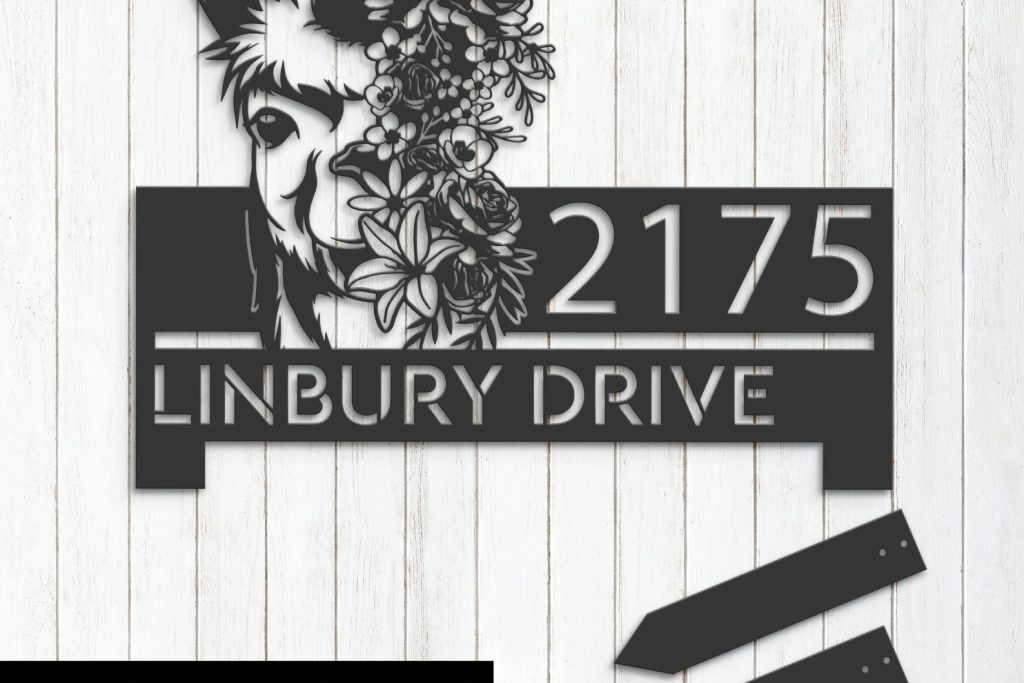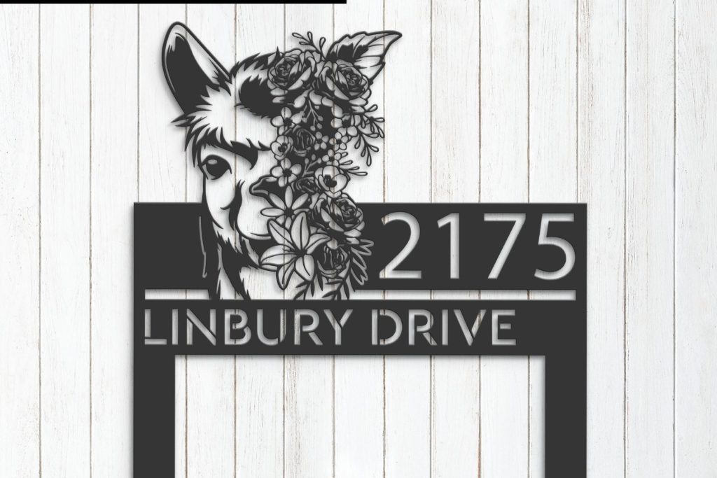 Floral Llama Address Sign – Personal Metal Plaque