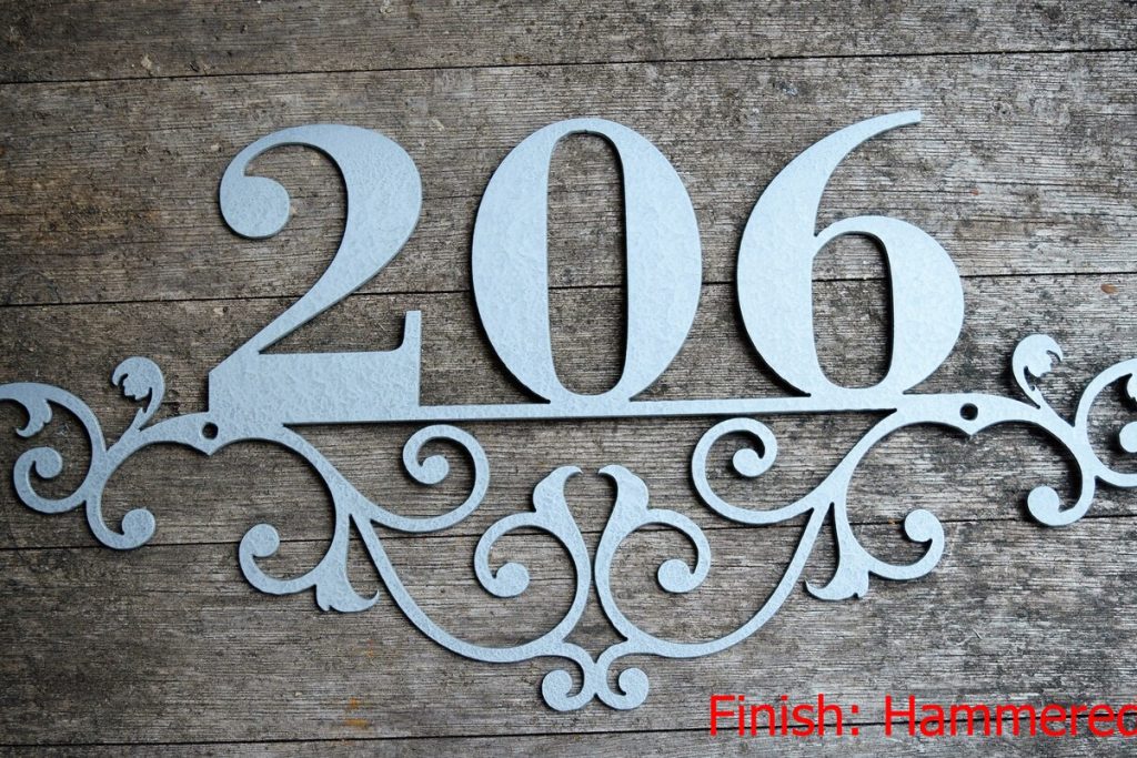 This is a custom metal address sign. It has pre-cut holes for easy installation and is made from steel. This product is personalized with your own house number and will make a great addition to any front porch or mailbox.