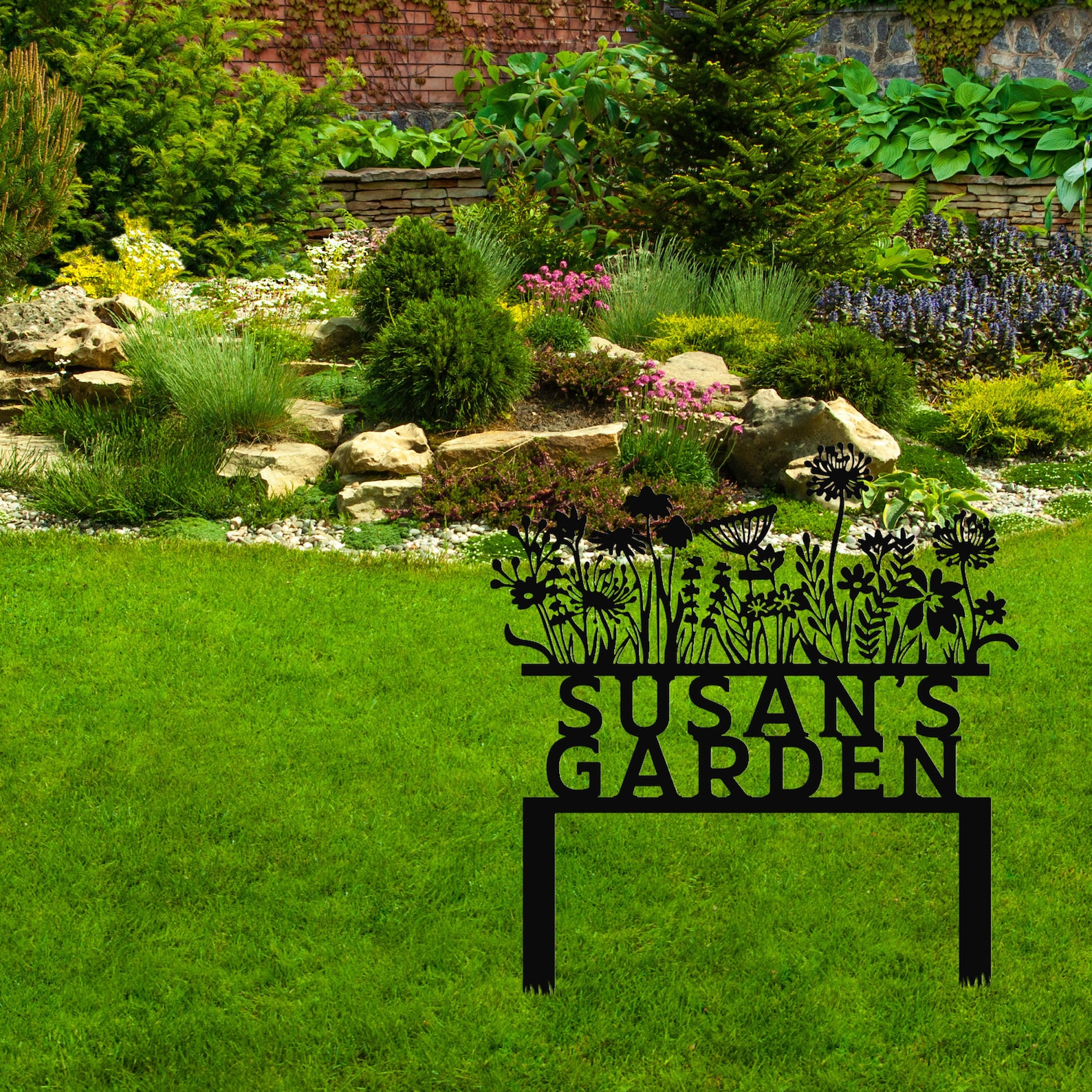 Custom Flowers Sign, Sign for Flower Beds, Metal Yard Art, Gift for Grandmother, Garden Gift, Patio Decor, Sign with Stakes, Metal Garden Decor, Outside Decor, Farmer Decor, Home Decor- Wall Art- Metal Wall Hangings – Custom Metal Works – Best Gift Ever – Unique Gift, Wall Hangings, Gift for Her, Gift for Him