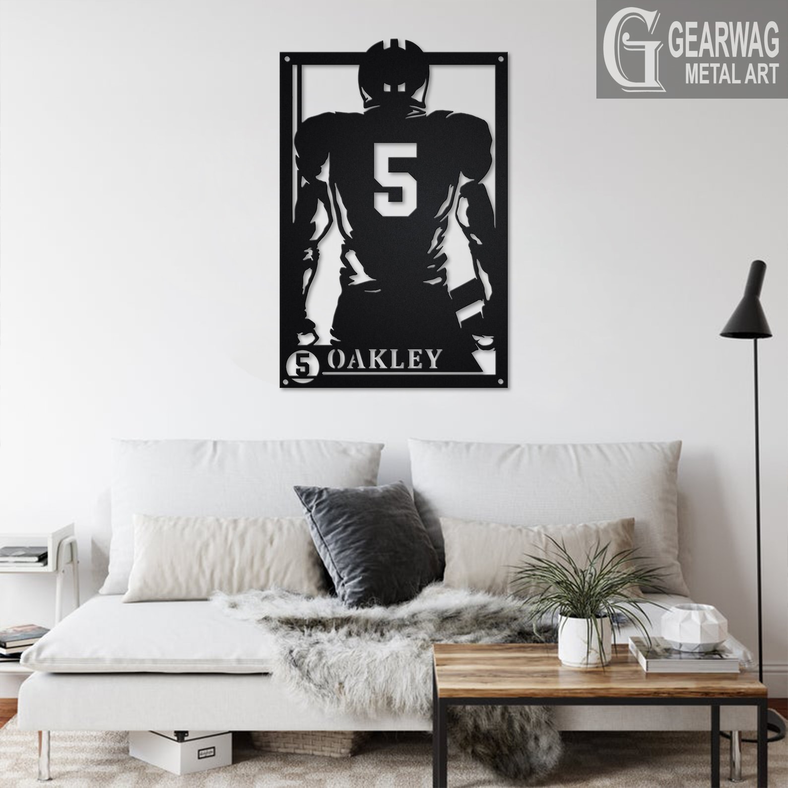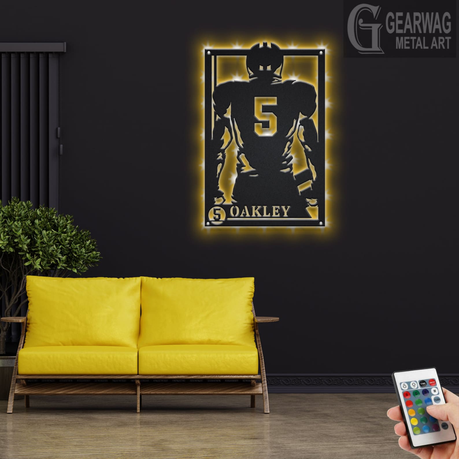 Football Metal Sign with LED, Personalized Player Decor