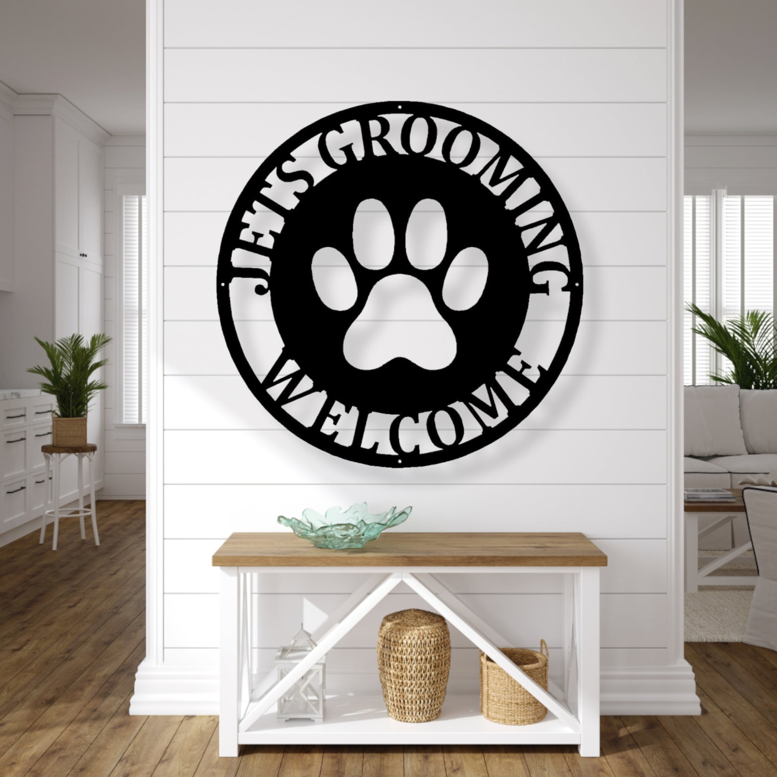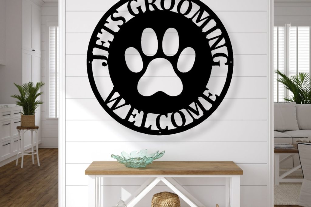 Front Door Monogram Sign with Paw Print – Custom Outdoor Metal Sign