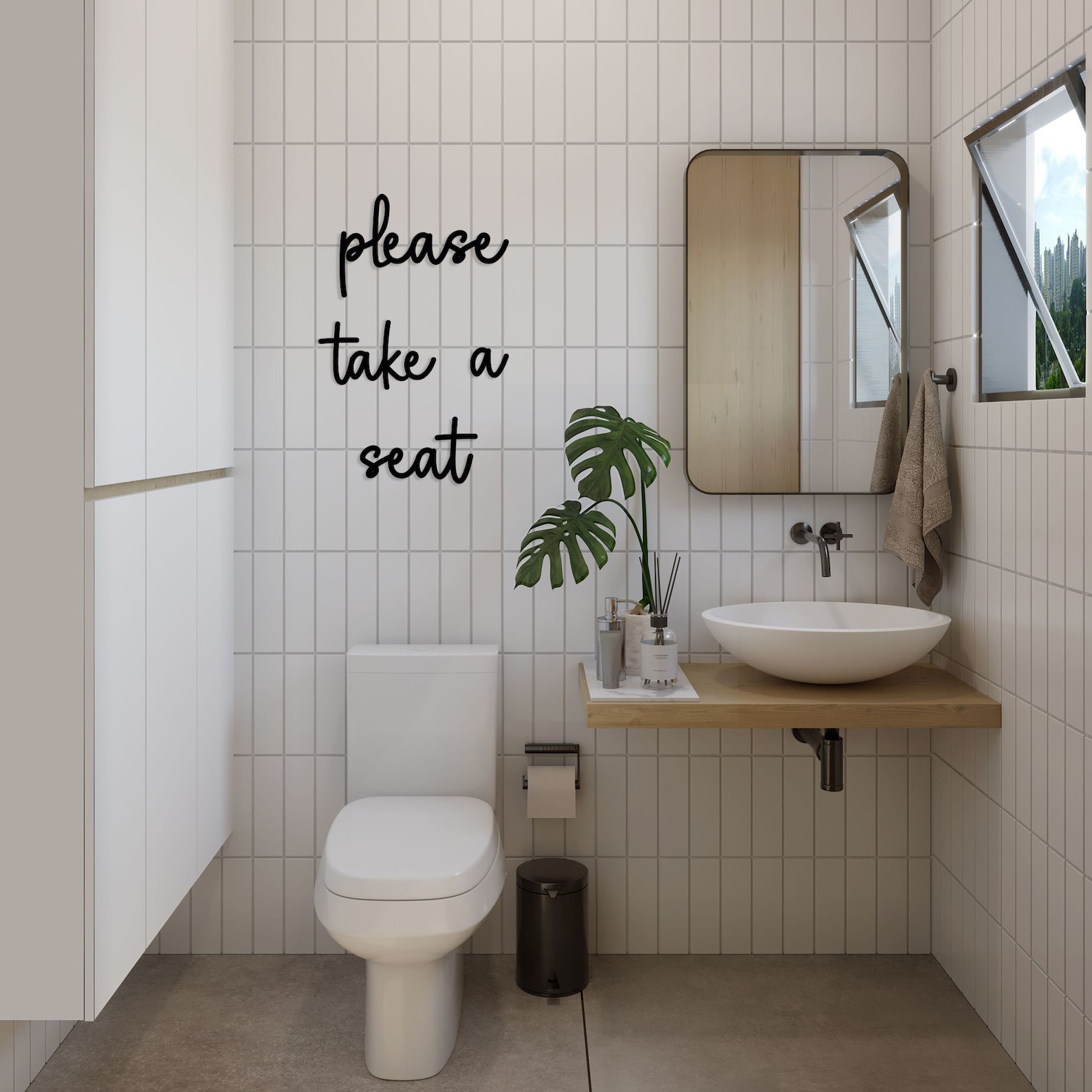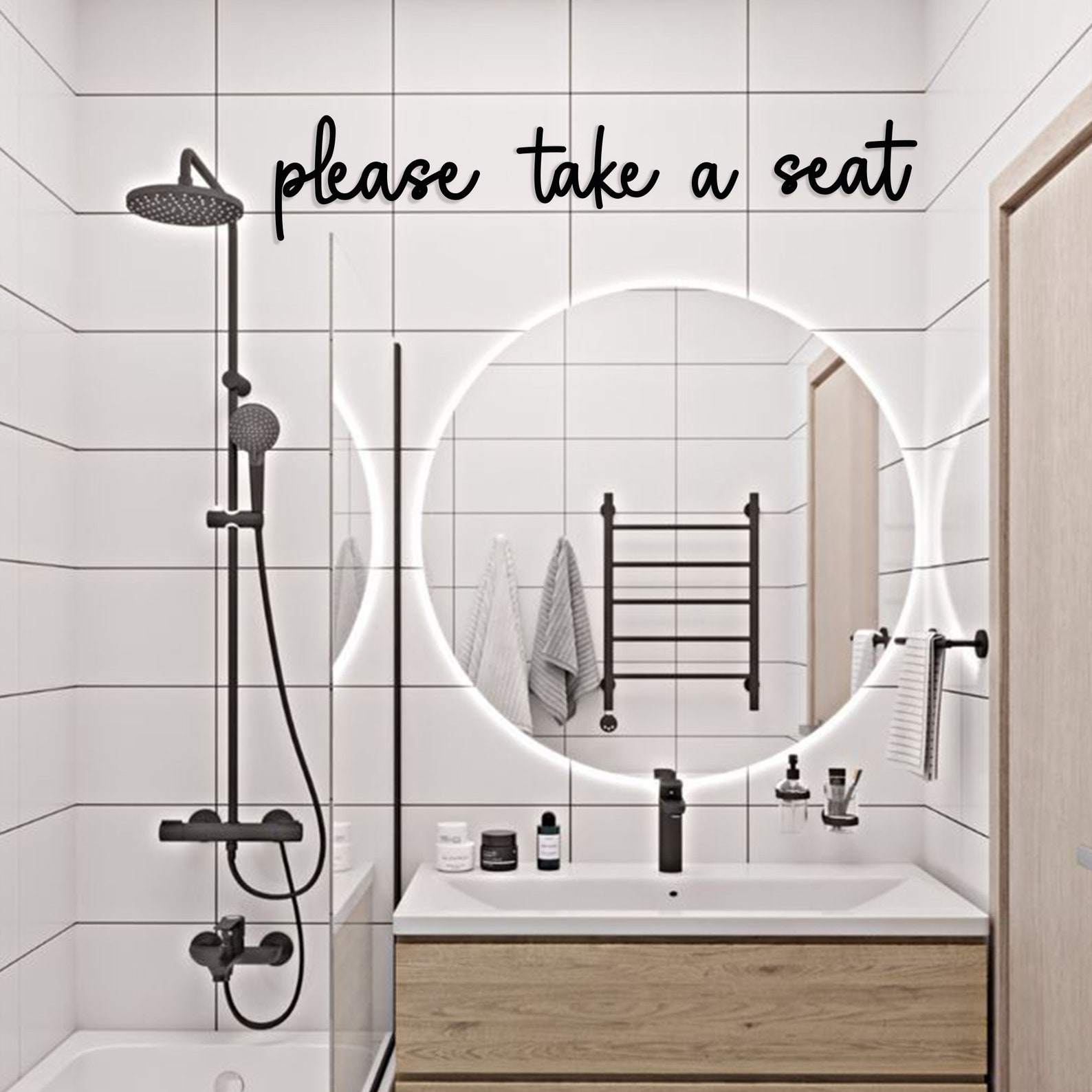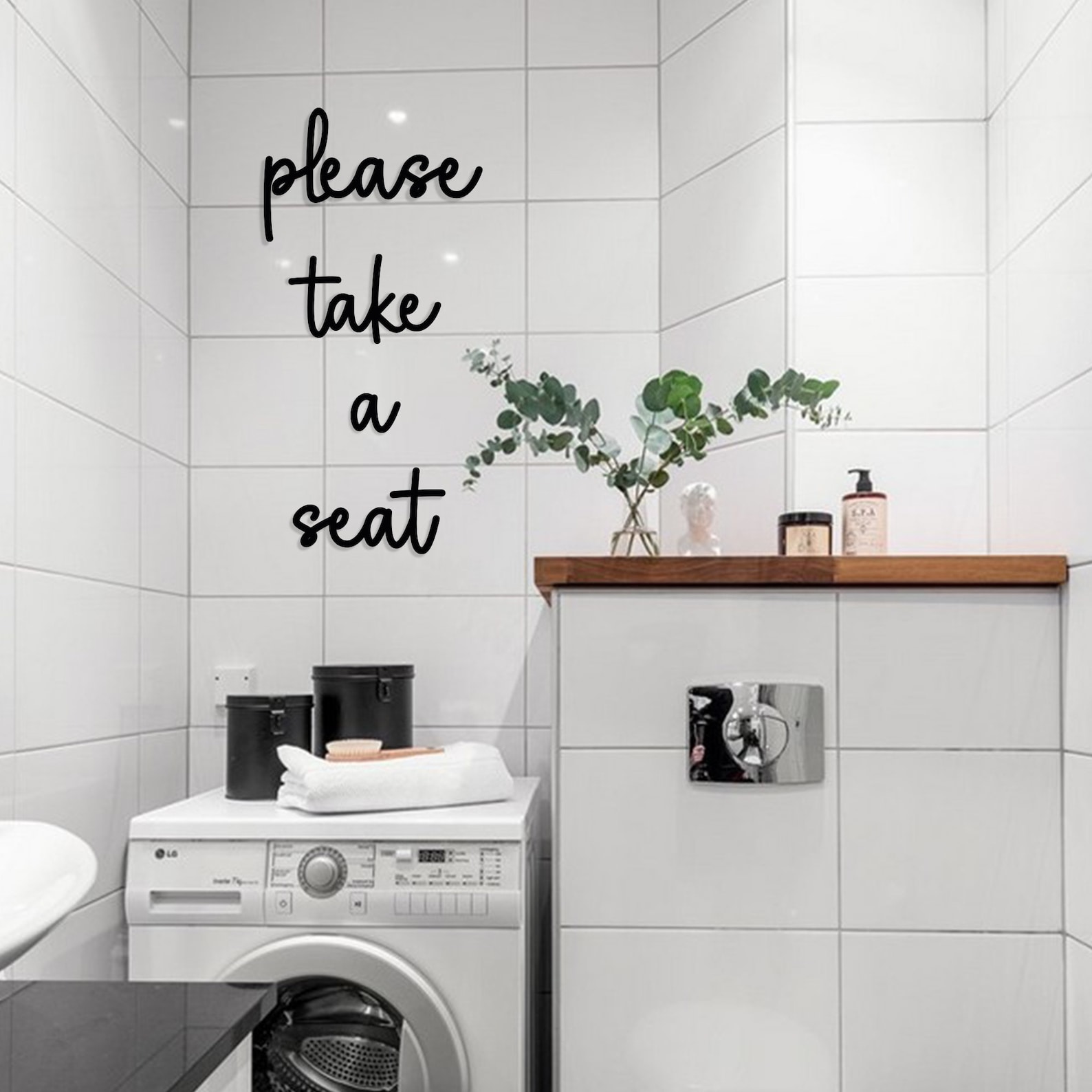 Please Take a Seat Metal Wall Sign is a perfect match with your modern, minimalist bathrooms and laundry rooms.