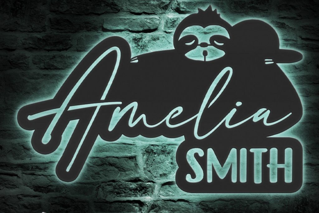 Be the first to review “Funny Sloth Metal Wall Art with LED – Personalized Name Sign”