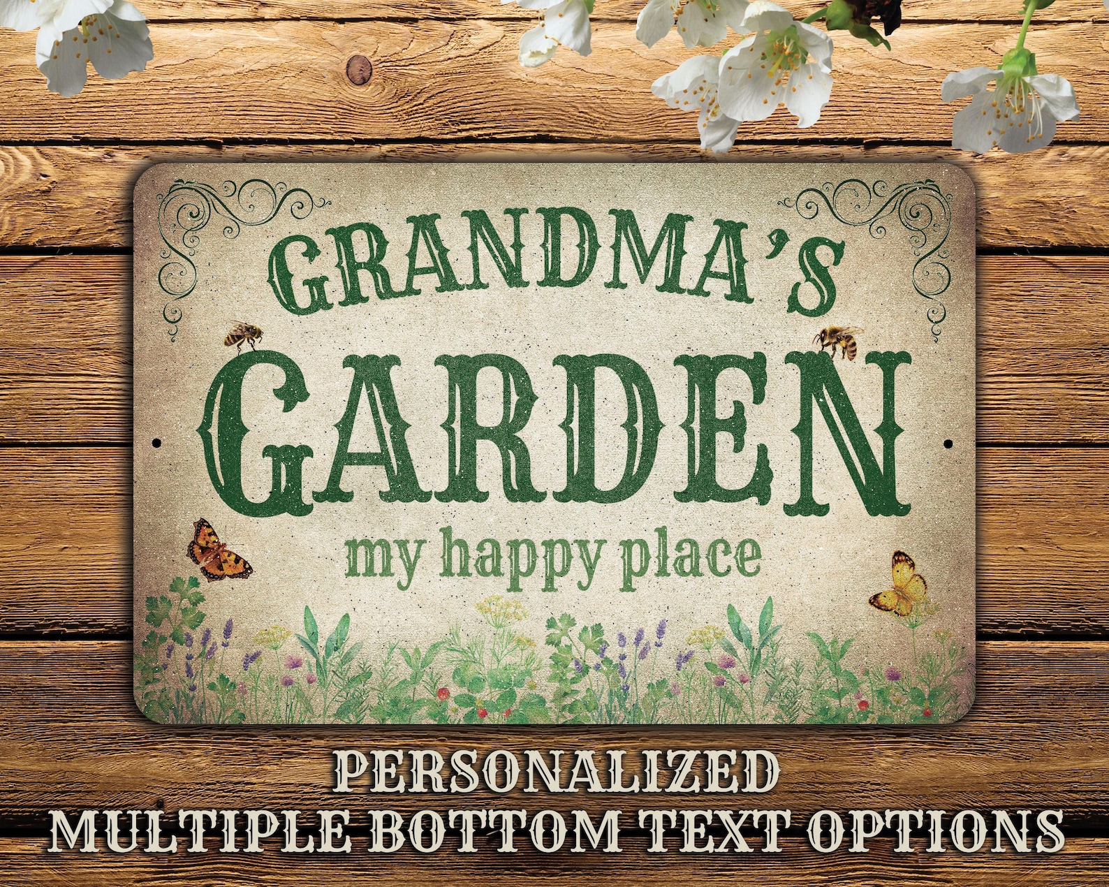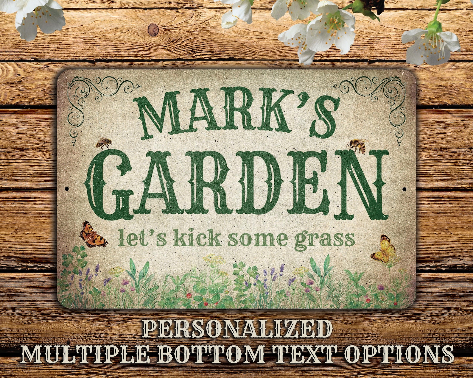Personalized Metal Garden Sign | Customize this Sign with a first name, family name or the special name of your garden | Gift for gardeners | Choose from 7 different text options | Designed with a rustic, distressed look | For that special person who can grow anything! | Makes a unique, one-of-a-kind gift!