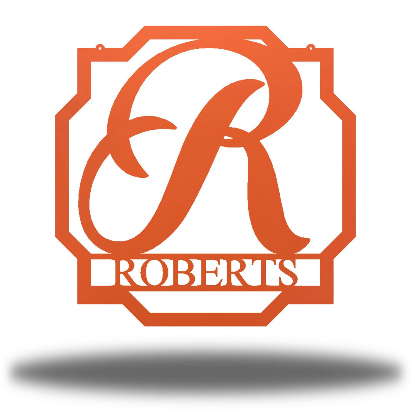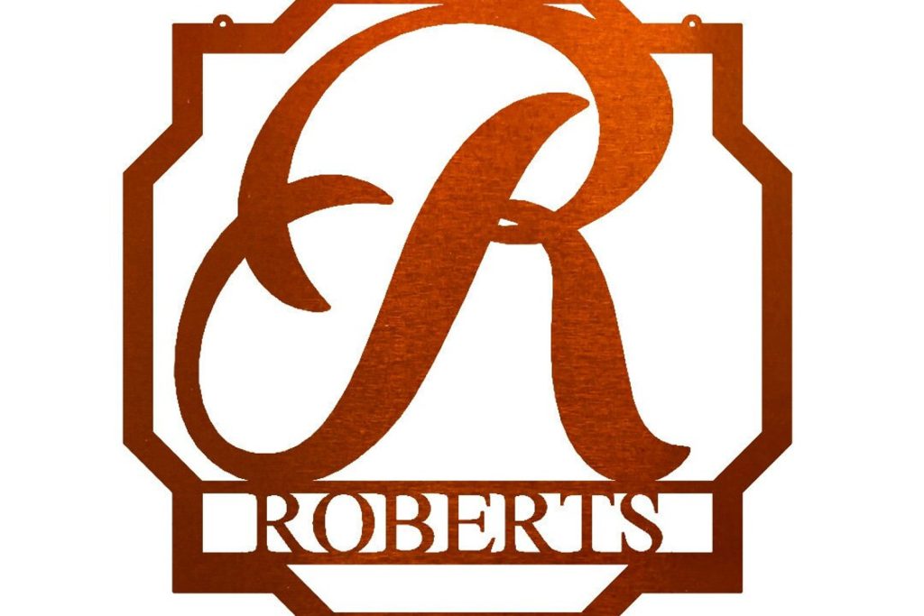 This Beautiful Geometric Monogram is constructed of 18 gauge steel on a Fiber Laser and then Powder Coated to give this item a one of a kind, unique finish.