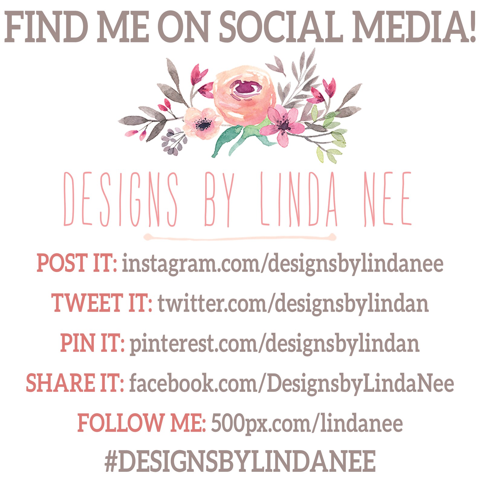 Designs, images and prints may not be shared, reproduced, resold or re-used in any form without the express written consent of Designs by Linda Nee LLC.