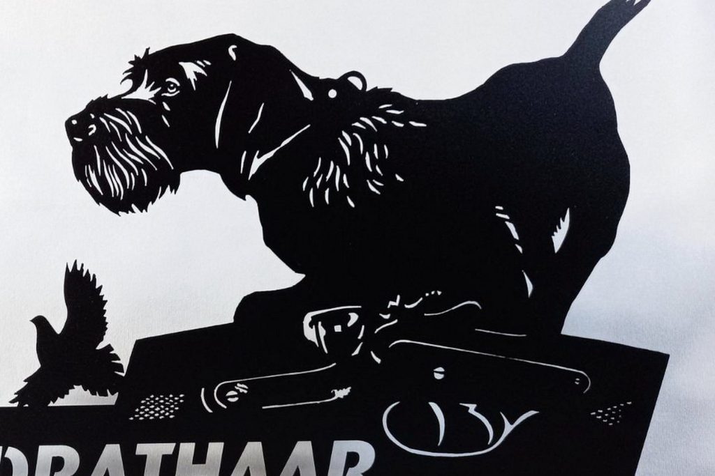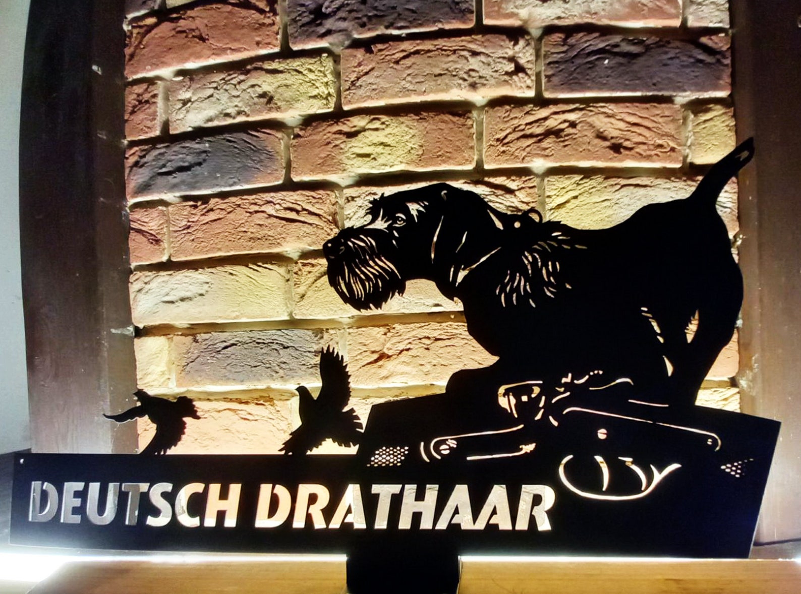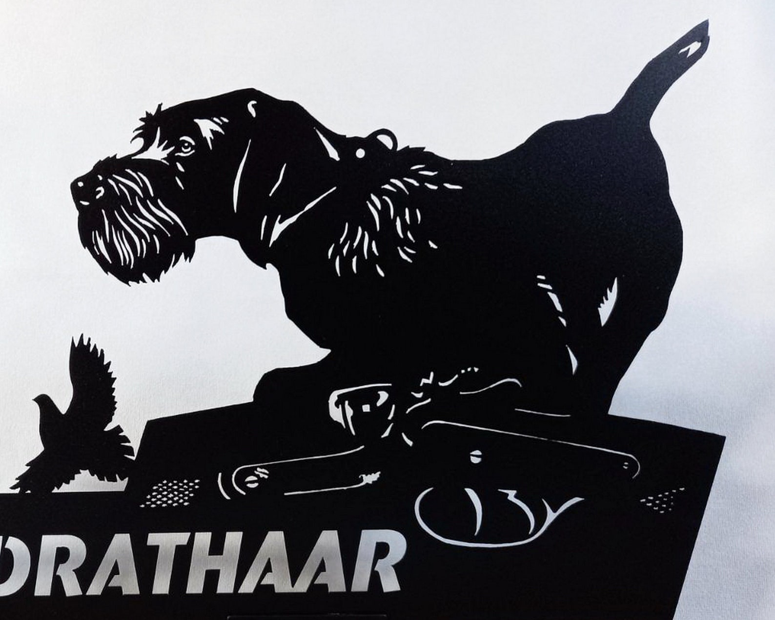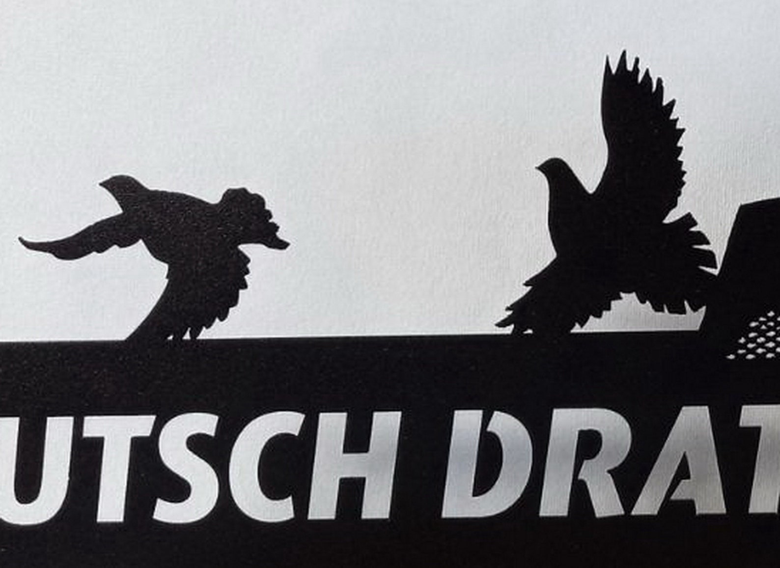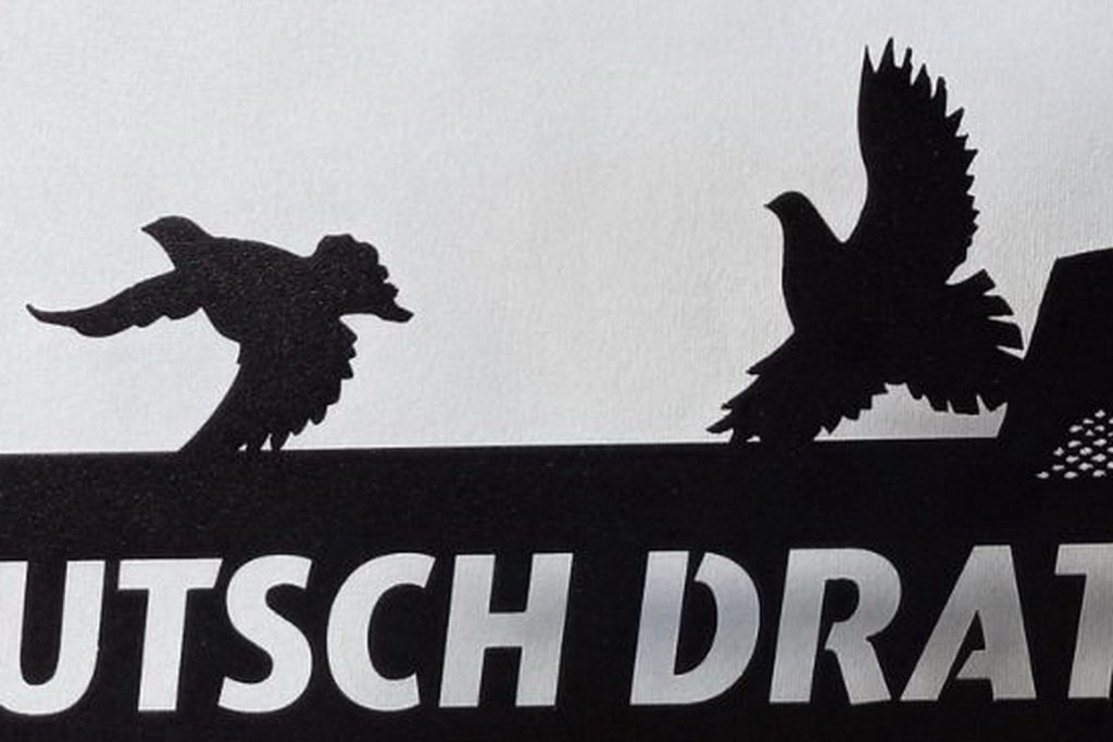 This metal sign "Deutsch Drahthaar" is made from high quality 16 gauge steel and has a weather-resistant powder coating.