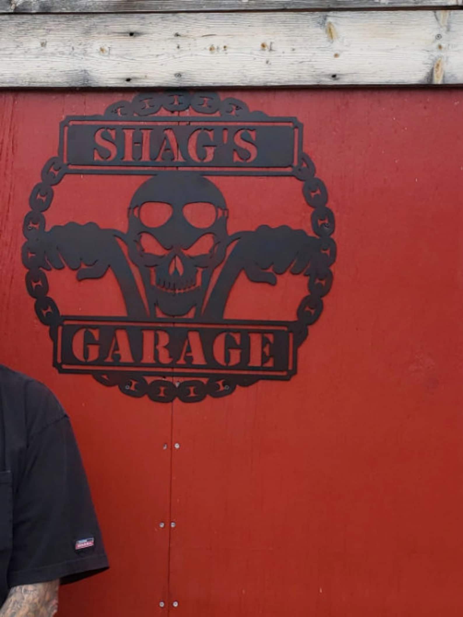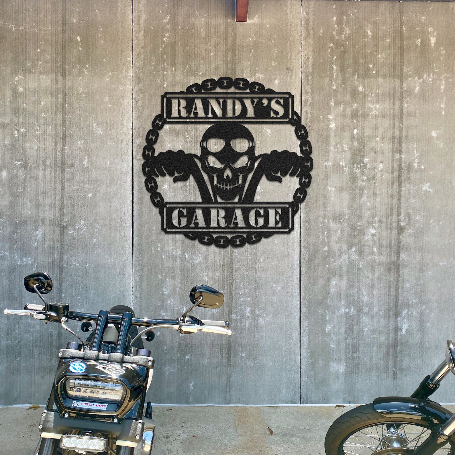 Sweet Ride9;s laser-cut Biker Skull Personalized Garage Sign is the perfect addition to your man cave or garage
