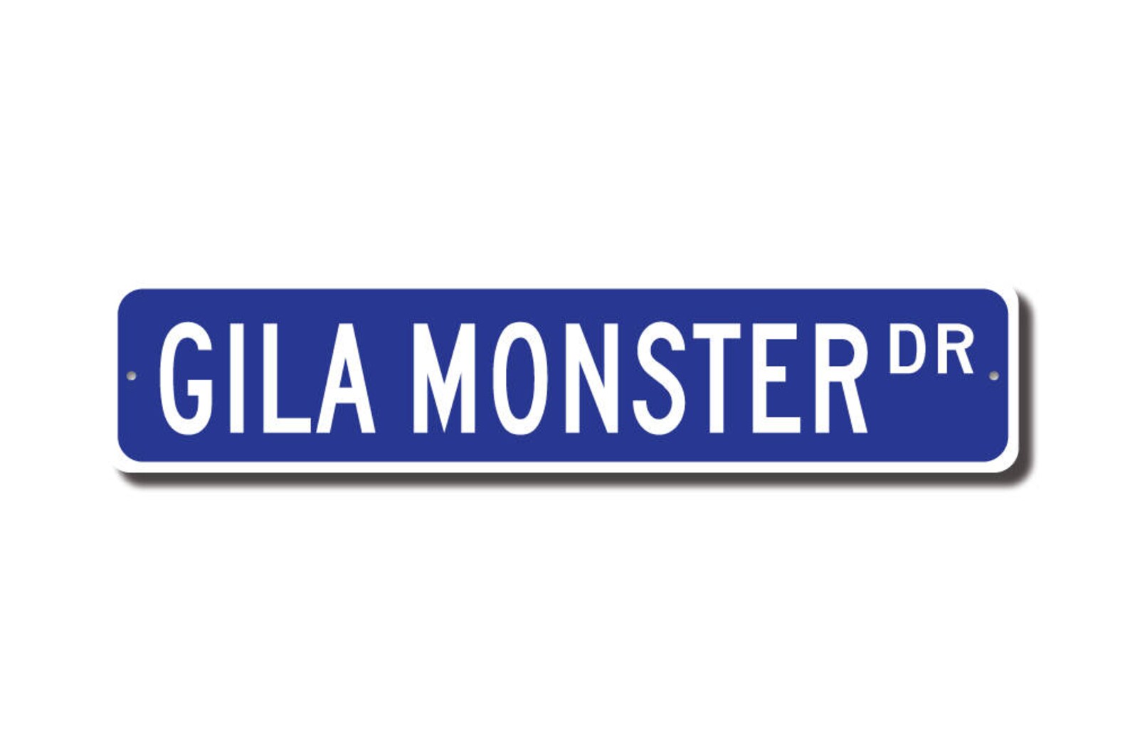 Gila Monster lovers check out this awesome street sign! This will make the perfect piece for any Gila Monster lover, or maybe you are a Gila Monster fan looking for a cool decor piece. Made of premium aluminum it will stand the test of time. This sign will look great in any room, home den, cave, or office! Get this sign for your favorite Gila Monster aficionado !