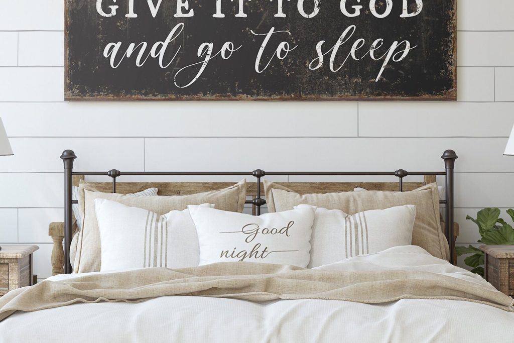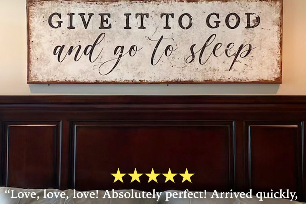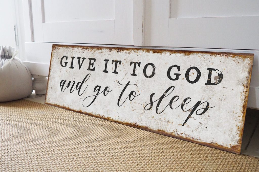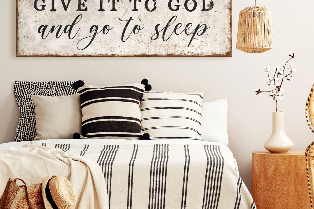 airbnb decortrustic primitivetgift ideas mom dadtanniversary new hometGive It To GodtAnd Go To SleeptSign for Above BedtModern FarmhousetDecor Canvas MetaltWood Master BedroomtWall Art Over BedtGuest Room headboardtcottagecore cabin