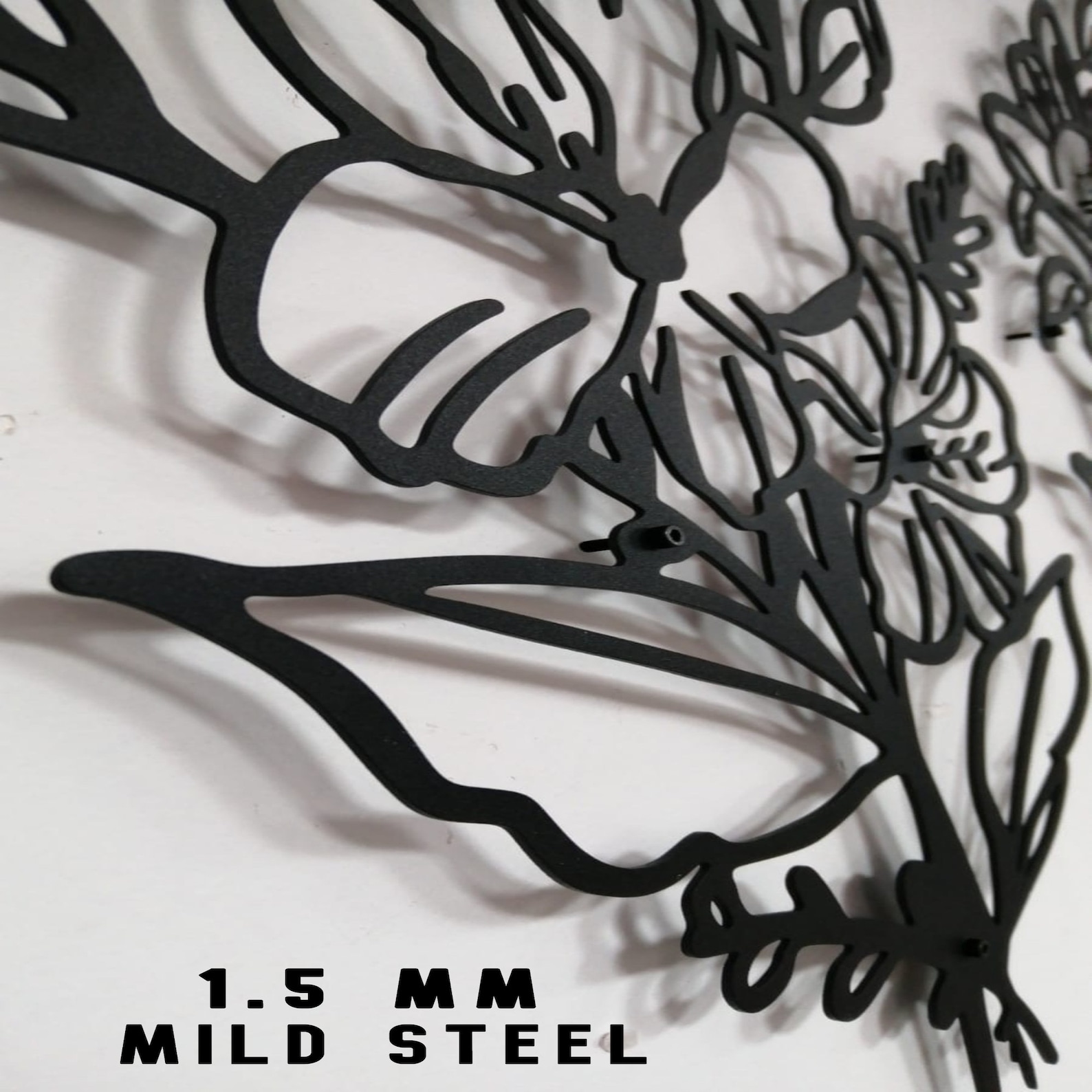 -3D SHADOW EFFECT: This Gold Butterfly metal wall art casts a beautiful shadow because it stays 2 cm away from the wall by elevation screws. The shadows create a cool three-dimensional feel that makes this metal wall decor something that all your friends and family will talk about and love. When placed in natural light, the shadow of the floral wall art tends to move around the art throughout the day, which makes the art fun to watch.