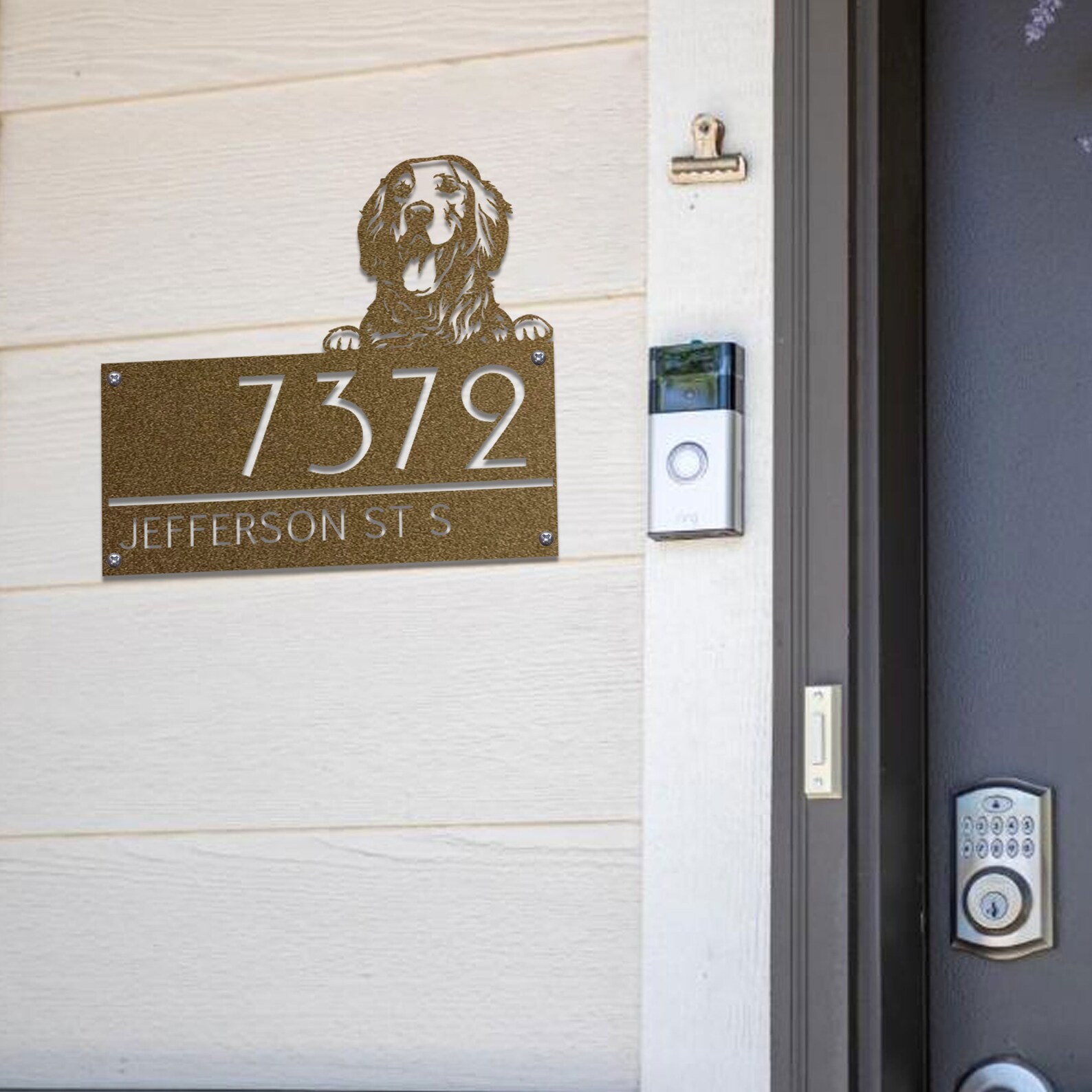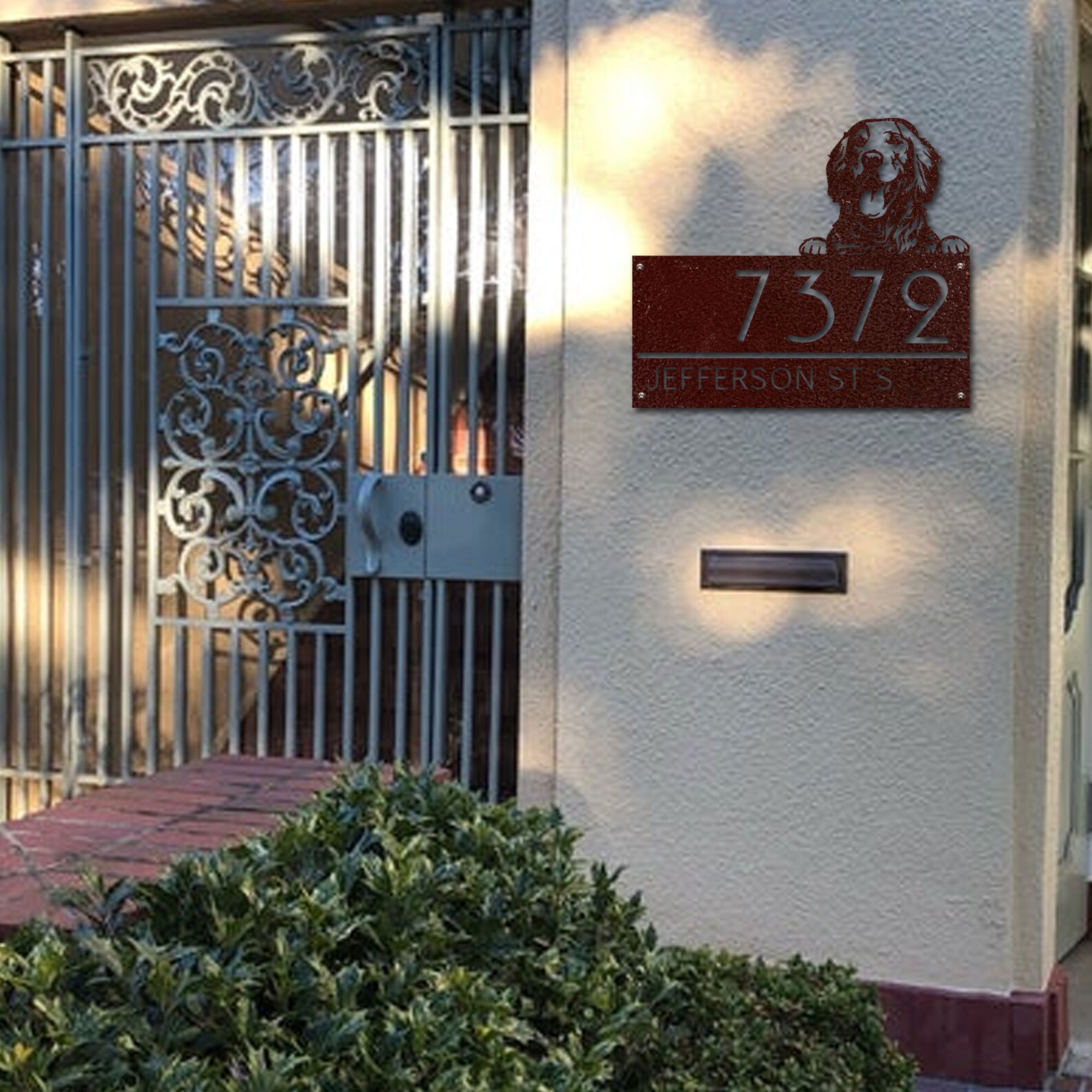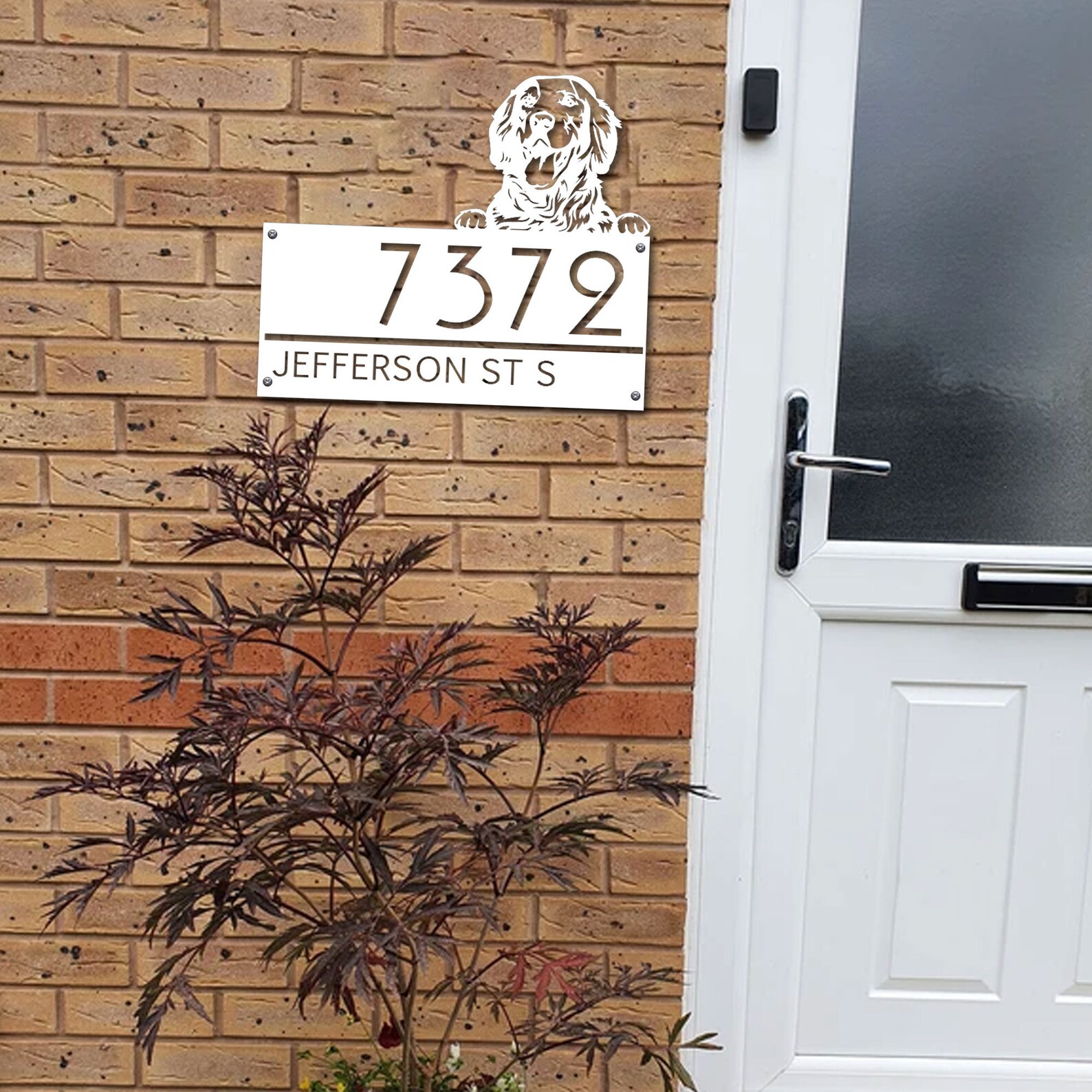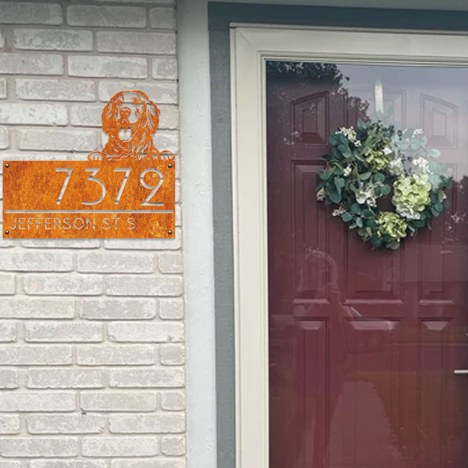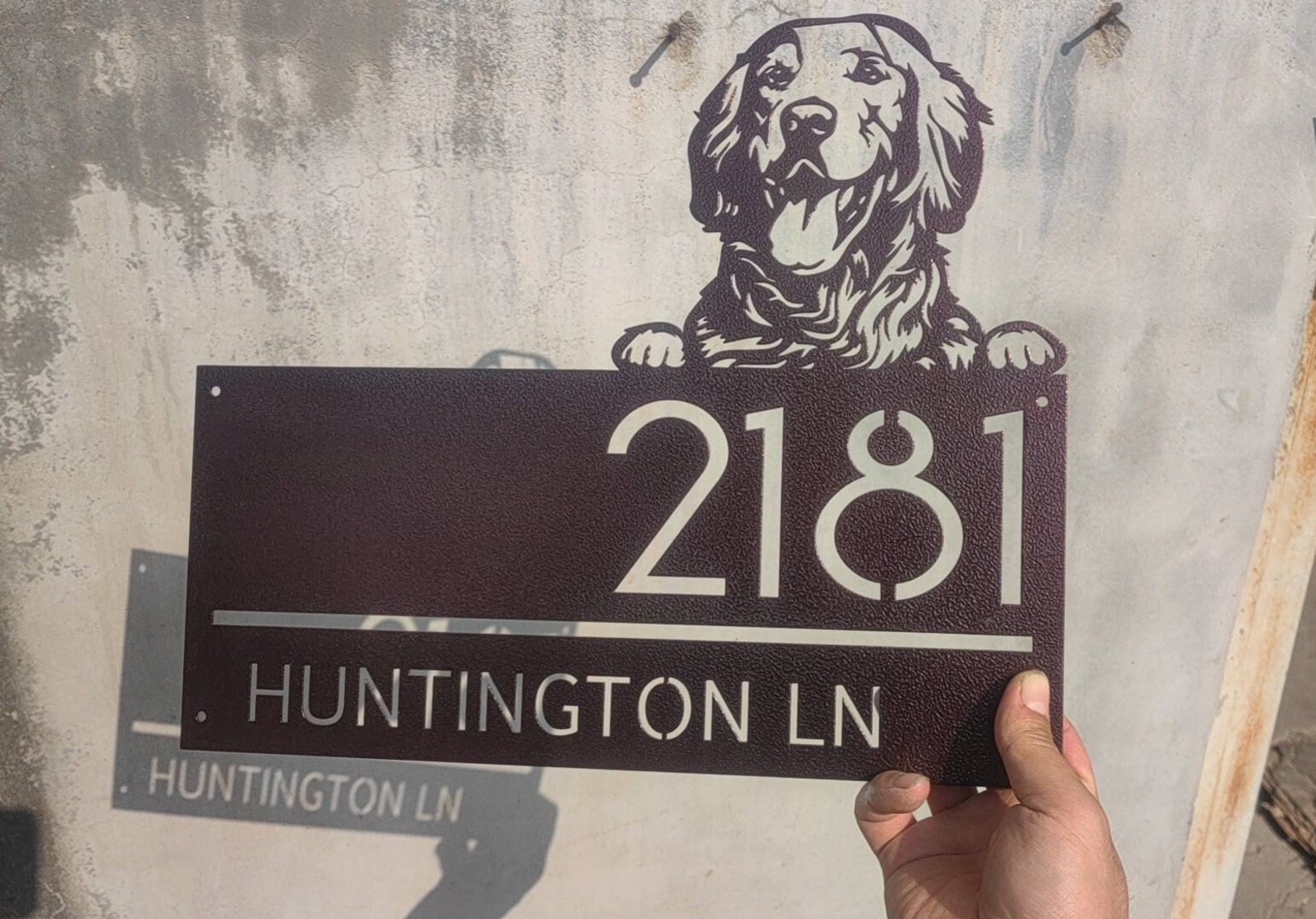 Custom Golden Retriever Metal House Number Sign, Horizontal Metal Address Sign, Dog Address Sign, Outdoor Number Plate, Housewarming Gift ,Animal Lover Gift, Personalized Gift, Metal Dog Plate
