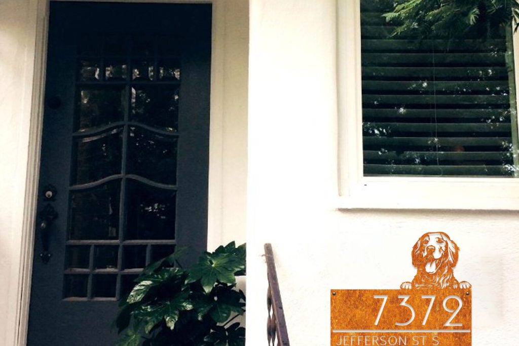 Be the first to review “Golden Retriever Metal Sign, Dog Address Sign”