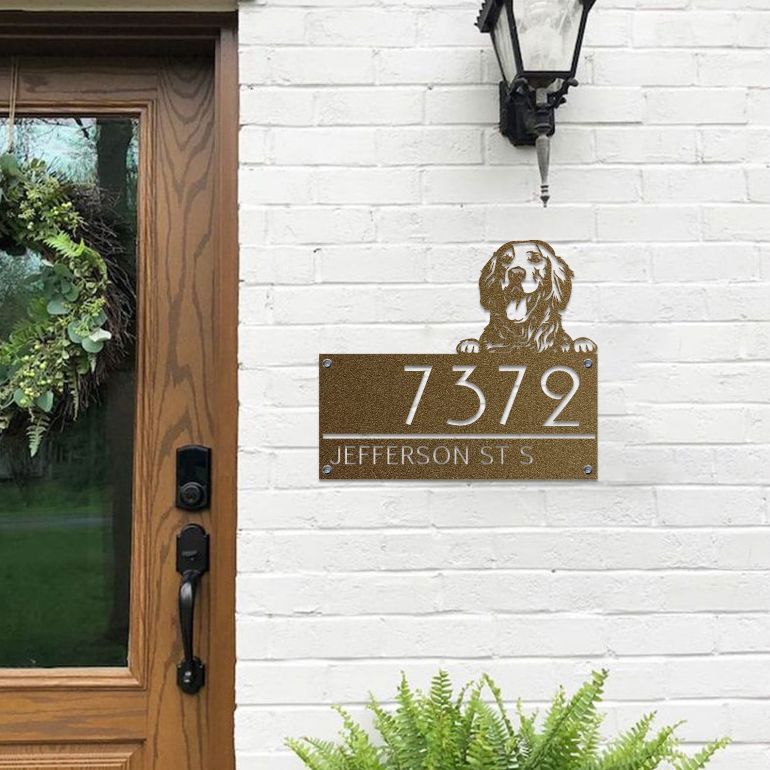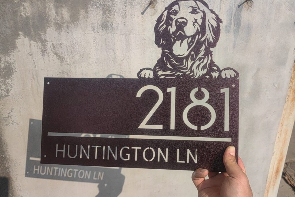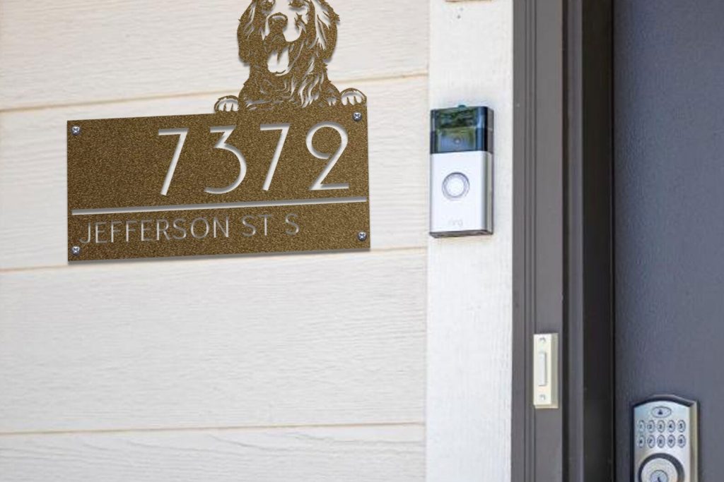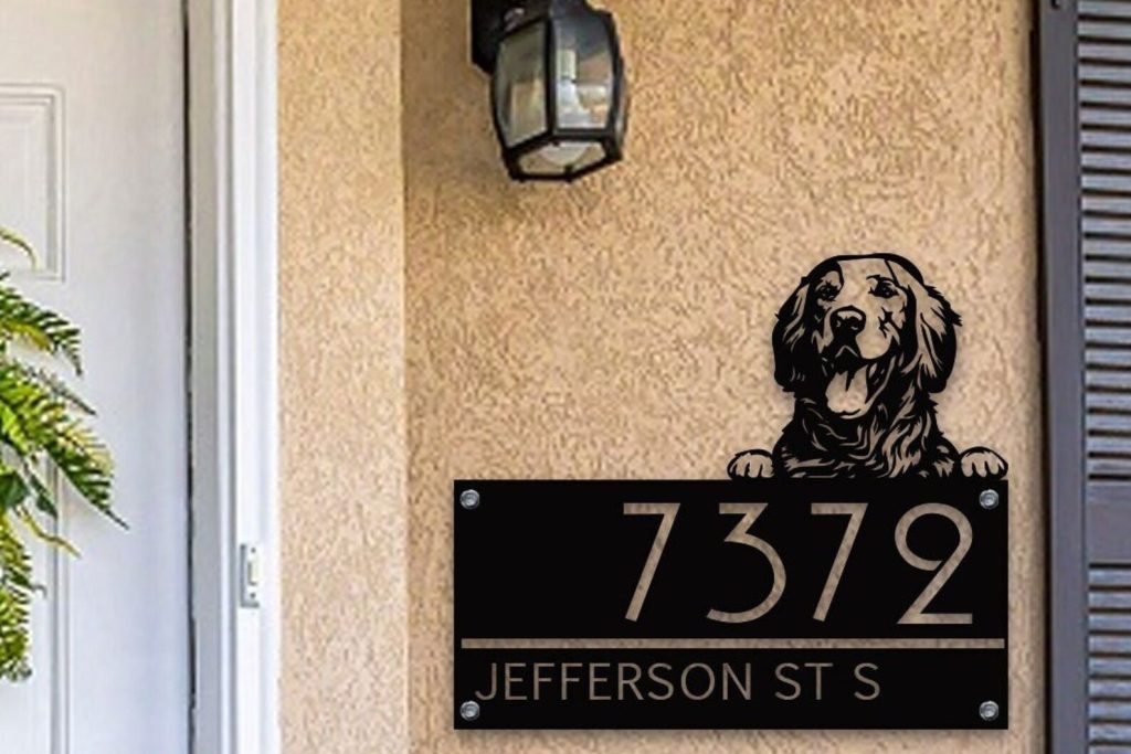 Custom Golden Retriever Metal House Number Sign, Horizontal Metal Address Sign, Dog Address Sign, Outdoor Number Plate, Housewarming Gift.